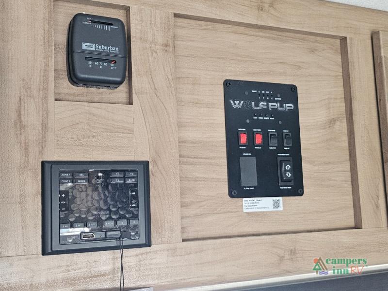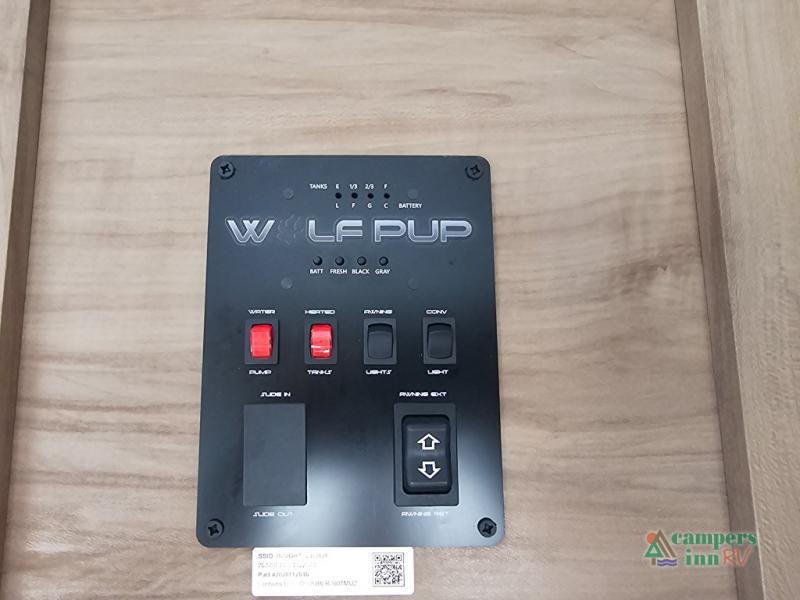 Each one of these Forest River Cherokee Wolf Pup Black Label travel trailers are lightweight and easy to tow! They are fully self contained with ample tank capacities, an abundance of storage space, and filled with at home amenities. The aerodynamic smooth radius front profile, the Power Gear frame technology, and the space saver rail design make them easier to maneuver. You will also appreciate the seamless roofing membrane with heat reflectivity to keep the sun from making your unit a hot box. The tongue and groove plywood flooring will hold up for years of fun and the USB charging stations help to keep your electronics at 100% while you're away. The Black Label Package includes a frameless window package, hung fiberglass gel coat sided walls, thermo-foil arctic insulation, and more!