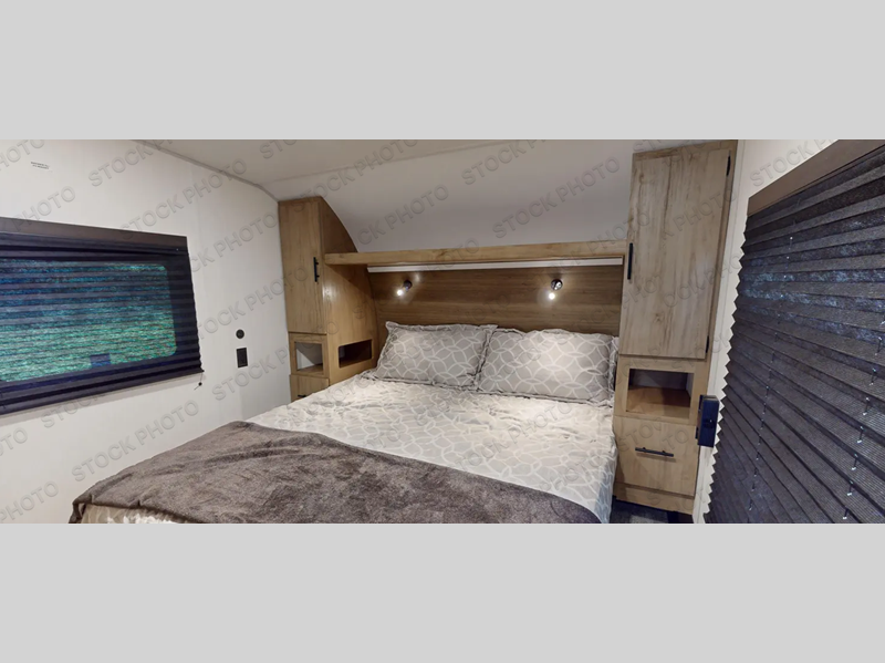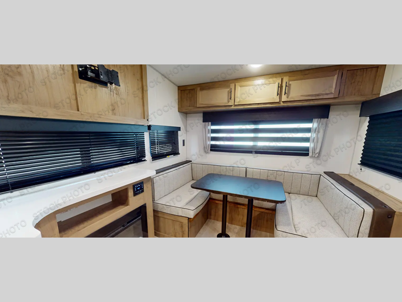 Camping trips are made complete in this fifth wheel! There is a large slide in the combined living area and kitchen, and here you'll find theater seating plus a pantry and a refrigerator for food storage. The rear U-shaped dinette provides more seating space, as well as dining and sleeping space for any guests you may have. The chef of your group will have all the appliances needed to cook meals, including an air fryer, although they may just find themselves cooking outdoors on the outside kitchen. A full bath will let you freshen up after a day at the lake, and the RV king bed is sure to provide a great night's rest. There are also dual wardrobes to keep your space tidy, along with a linen closet with a washer/dryer option!