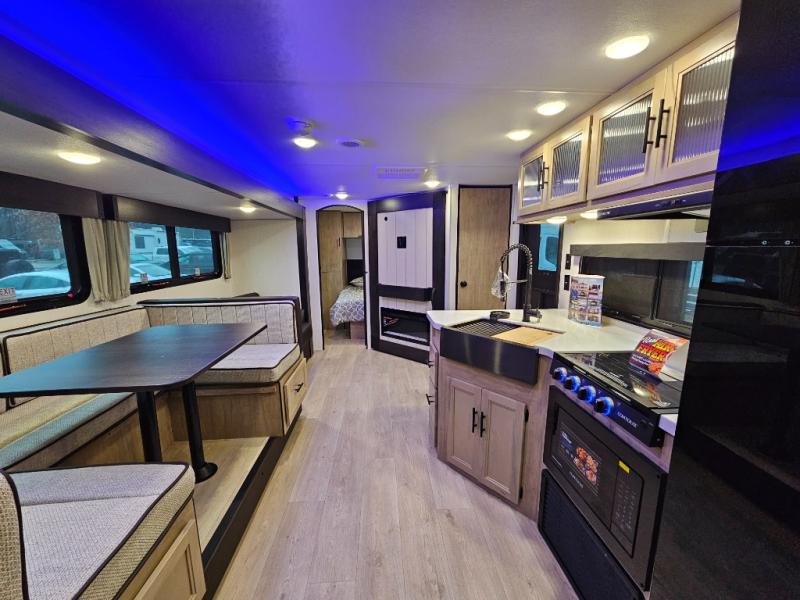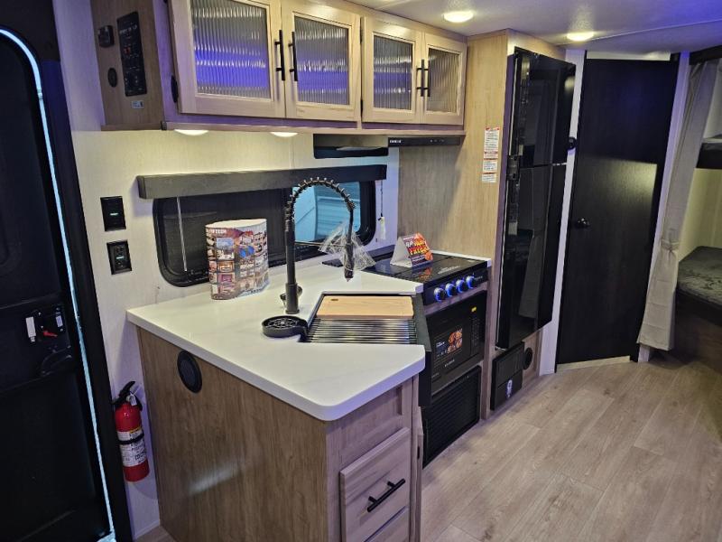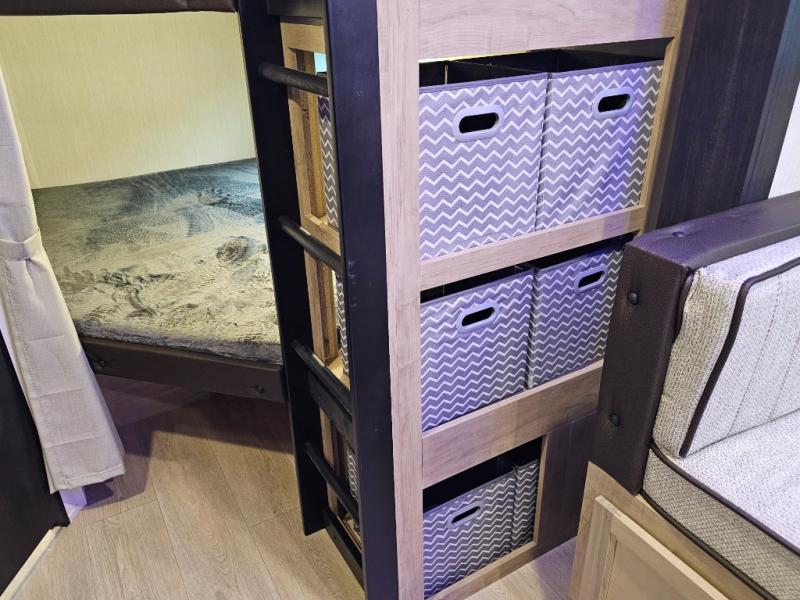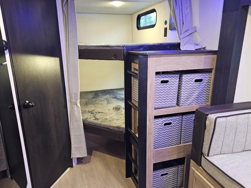 The 26KFBL is ideal for families or groups who need larger sleeping capacity without giving up comfort or style. The double bunks, RV king bed, and spacious slide-out living area provide room for everyone, while the outdoor kitchen and premium Black Label upgrades elevate your camping experience. Durable, functional, and loaded with value, this Grey Wolf is ready for your next adventure.