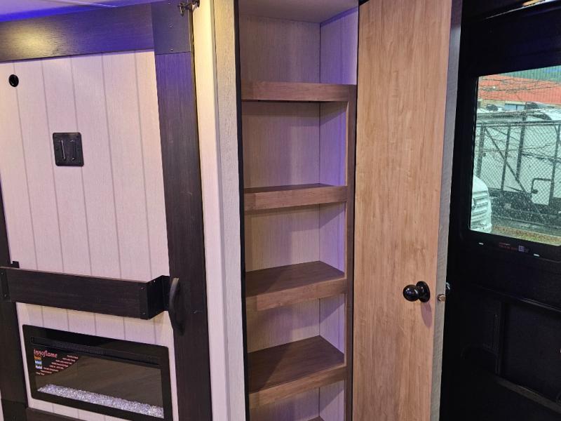 The Cherokee Grey Wolf Black Label 26KFBL delivers expanded sleeping capacity, upgraded finishes, and smart storage in a family-friendly layout. With double-size bunks, dual entry doors, a private RV king bedroom, and an outdoor kitchen, this model is built for campers who want comfort inside and out.