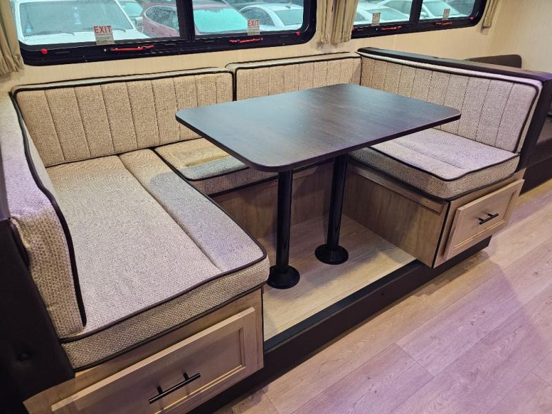 U-shaped dinette and sofa convert for additional sleeping space
