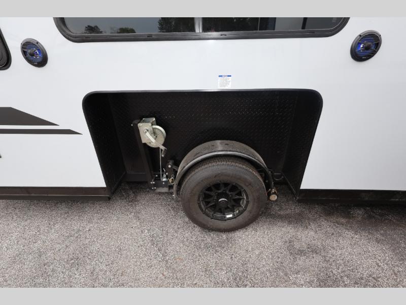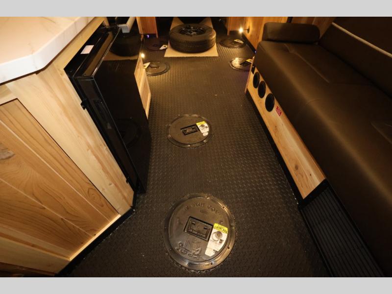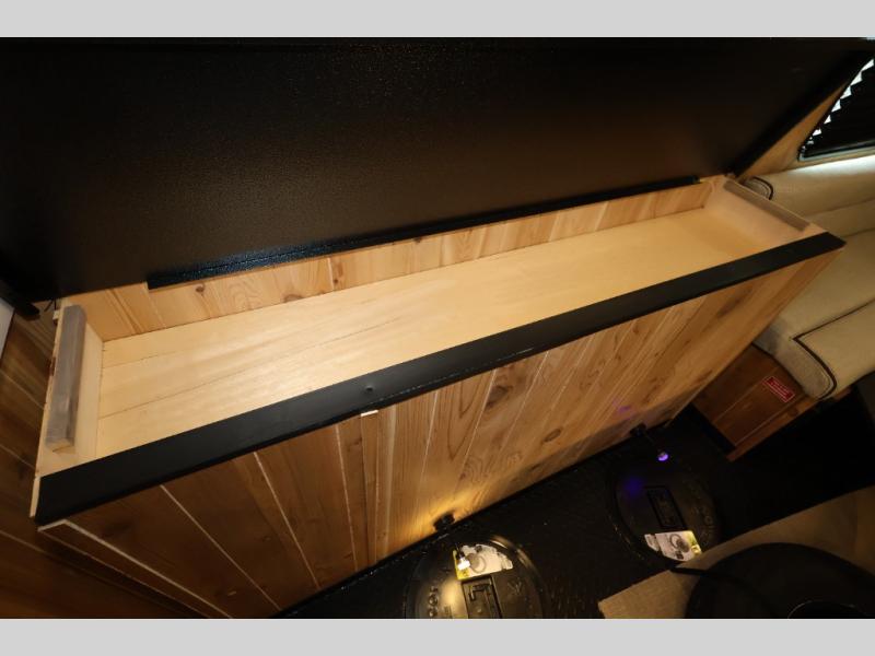 The Cherokee Grey Wolf fish houses by Forest River are constructed with a fully walkable residential trussed roof system, dual pane windows, and a thermofoil wrapped roof for additional insulation. You will also find a heavy duty rubber floor, a diamond plate exterior base, and a V-nose design for better towability. There is convenient rod storage inside, along with multiple fishing holes, LED fishing hole lights, and a 12V refrigerator!