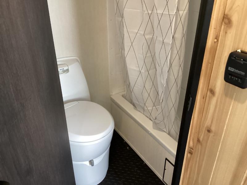 Enjoy the luxury of a separate shower, toilet, and vanity—for comfort on the road and off the ice. -