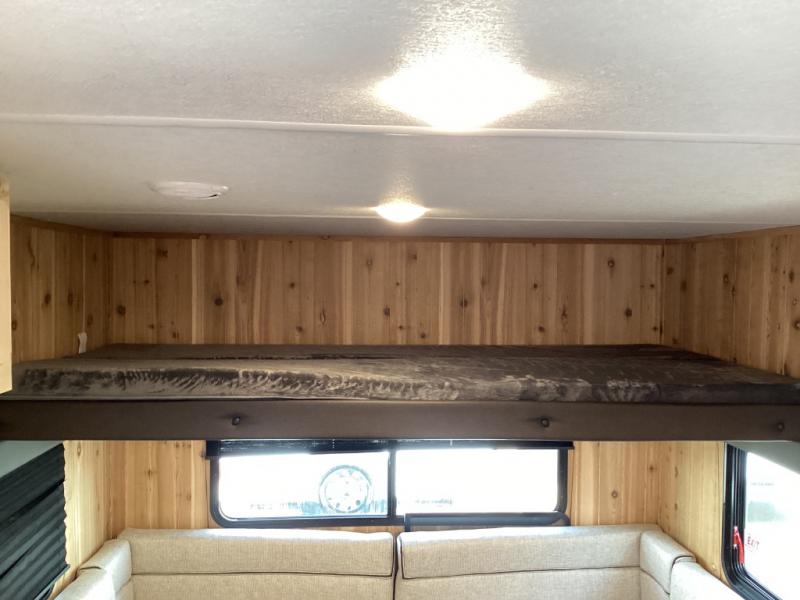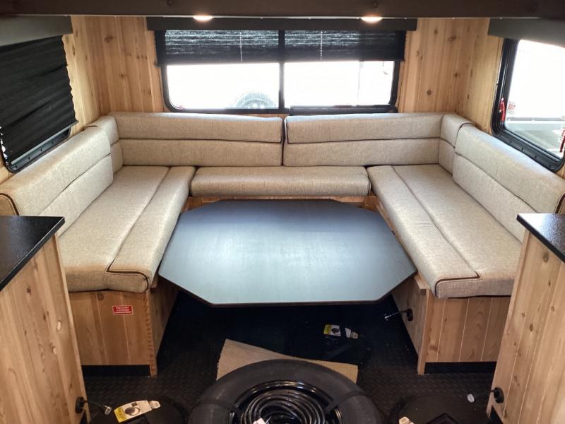Bonus sleeping space with a bunk bed, jackknife sofa, and U-shaped dinette that converts for added coziness or storage. -