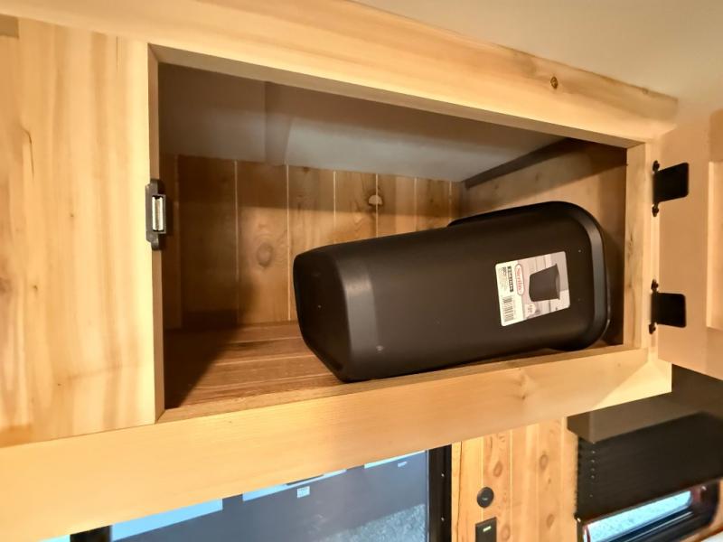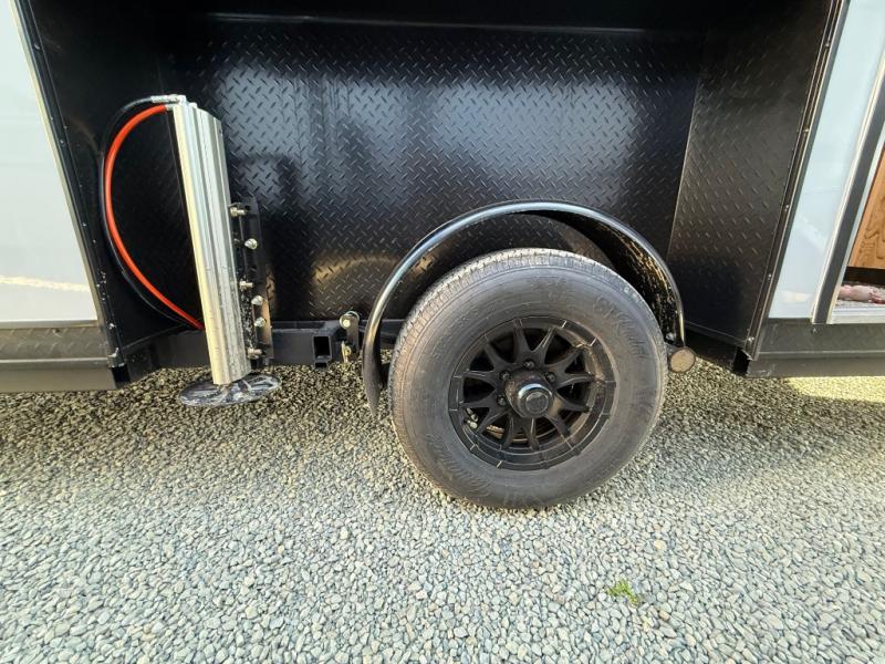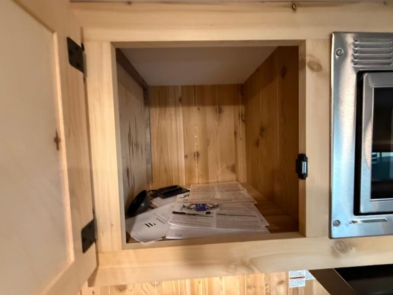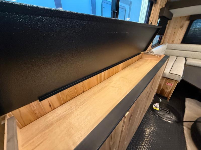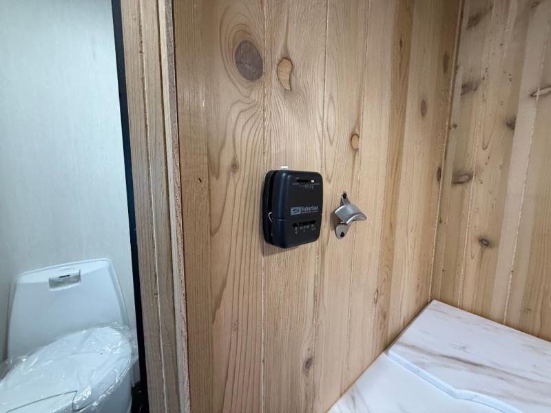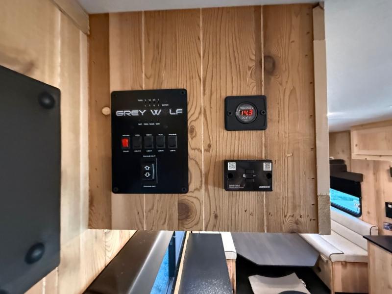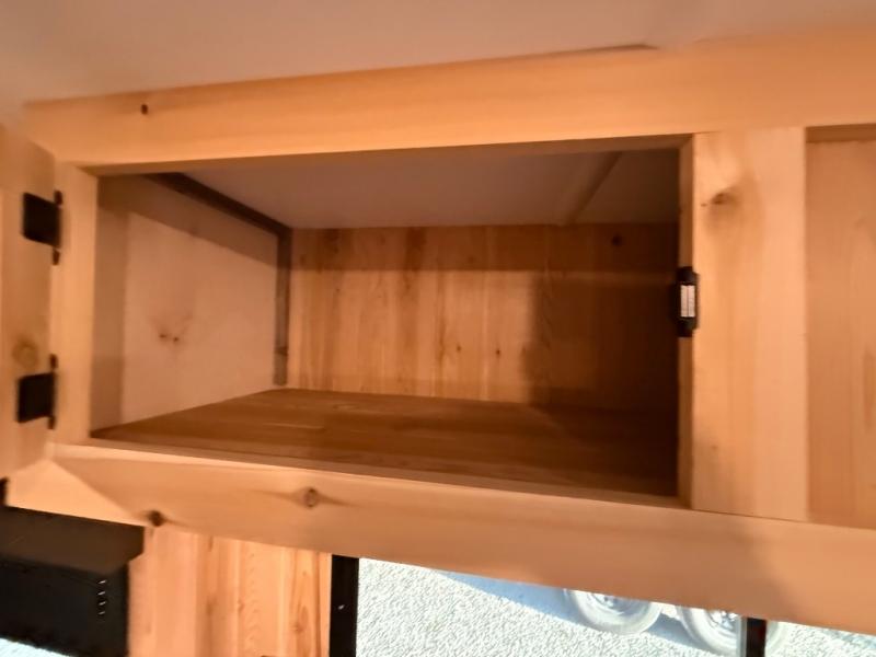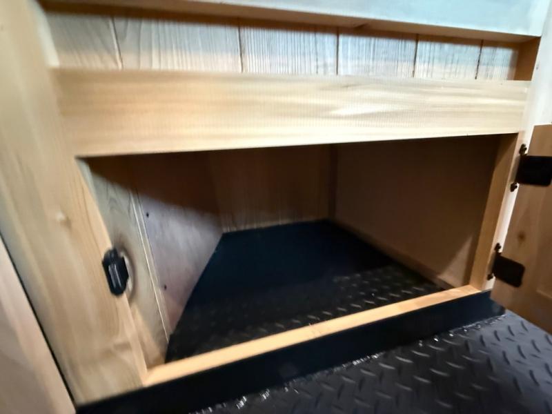 The Cherokee Grey Wolf fish houses by Forest River are constructed with a fully walkable residential trussed roof system, dual pane windows, and a thermofoil wrapped roof for additional insulation. You will also find a heavy duty rubber floor, a diamond plate exterior base, and a V-nose design for better towability. There is convenient rod storage inside, along with multiple fishing holes, LED fishing hole lights, and a 12V refrigerator!