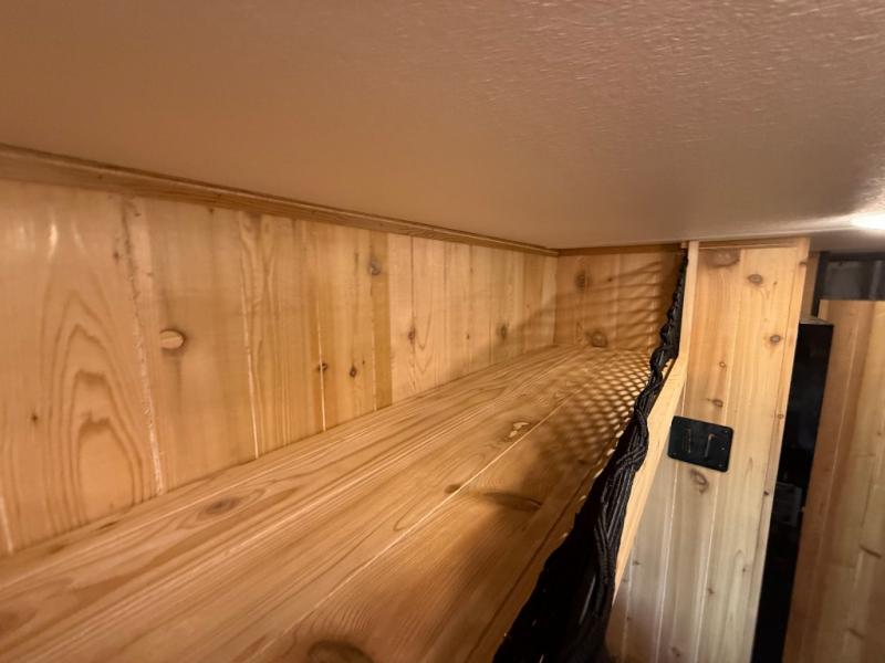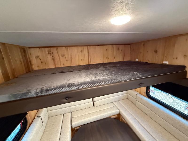 If you want to get away to take the kids fishing or spend a quiet weekend alone on the lake, use this Cherokee Grey Wolf fish house! This model features a U-shaped dinette so that you can sit down to eat, and there is an electric lift bunk for added sleeping space. You will be able to fry up that day's catch by using the range, and there is even a 12V refrigerator for any of your perishables. Throughout this model there are fishing holes, and when you are not fishing, you can store your fishing rods in the rod storage along the side of this model. Later on, you can even wash off the day's filth by stepping into the front bathroom and using the shower to rinse and relax!