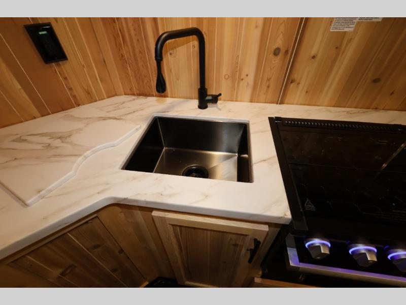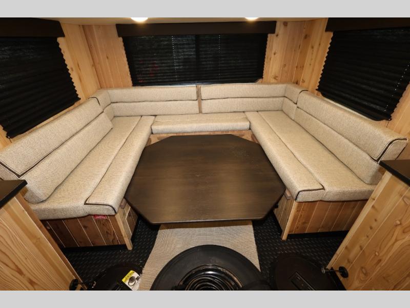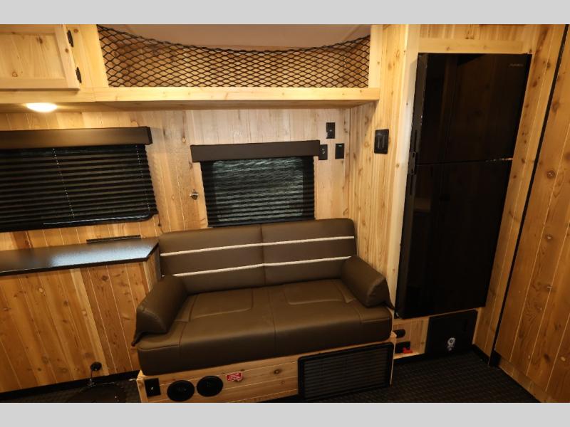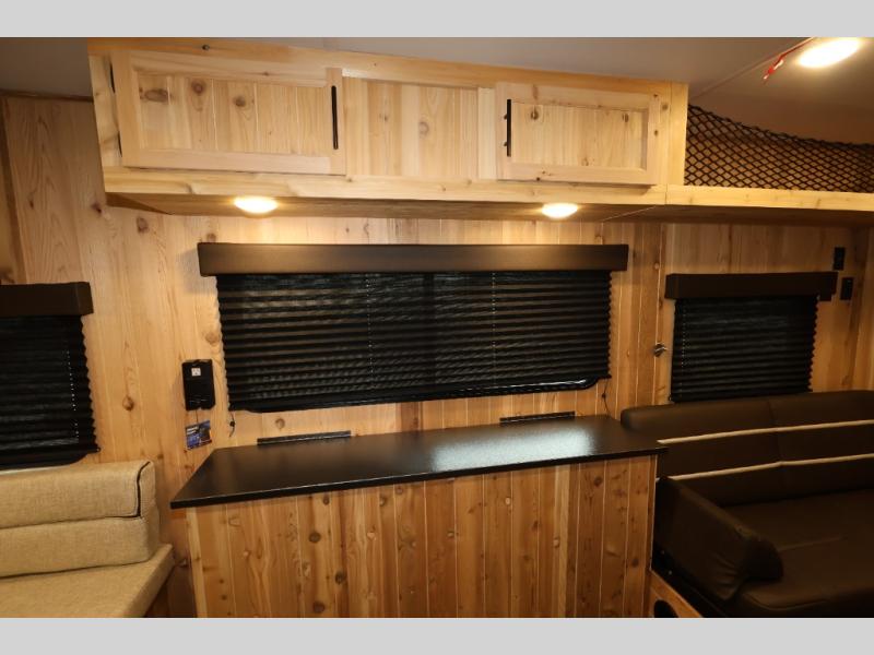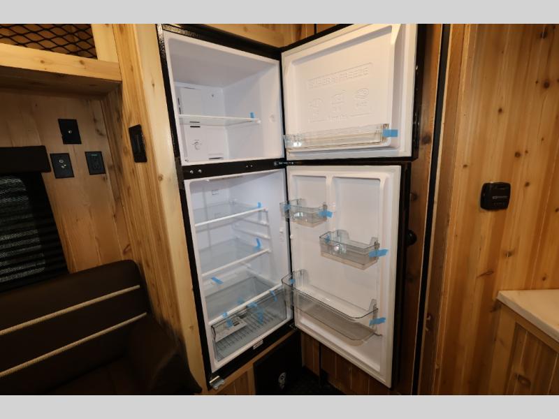 The Cherokee Grey Wolf fish houses by Forest River are constructed with a fully walkable residential trussed roof system, dual pane windows, and a thermofoil wrapped roof for additional insulation. You will also find a heavy duty rubber floor, a diamond plate exterior base, and a V-nose design for better towability. There is convenient rod storage inside, along with multiple fishing holes, LED fishing hole lights, and a 12V refrigerator!
