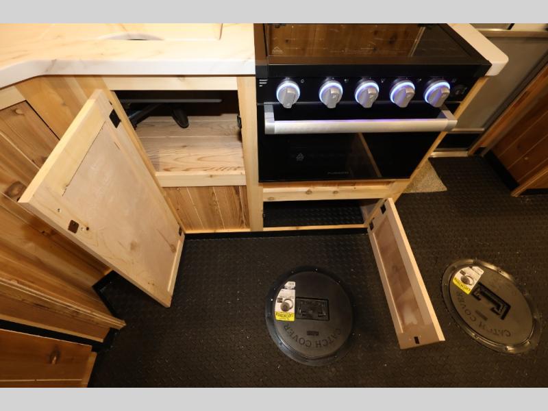 If you want to get away to take the kids fishing or spend a quiet weekend alone on the lake, use this Cherokee Grey Wolf fish house! This model features a U-shaped dinette so that you can sit down to eat, and there is an electric lift bunk for added sleeping space. You will be able to fry up that day's catch by using the range, and there is even a 12V refrigerator for any of your perishables. Throughout this model there are fishing holes, and when you are not fishing, you can store your fishing rods in the rod storage along the side of this model. Later on, you can even wash off the day's filth by stepping into the front bathroom and using the shower to rinse and relax!