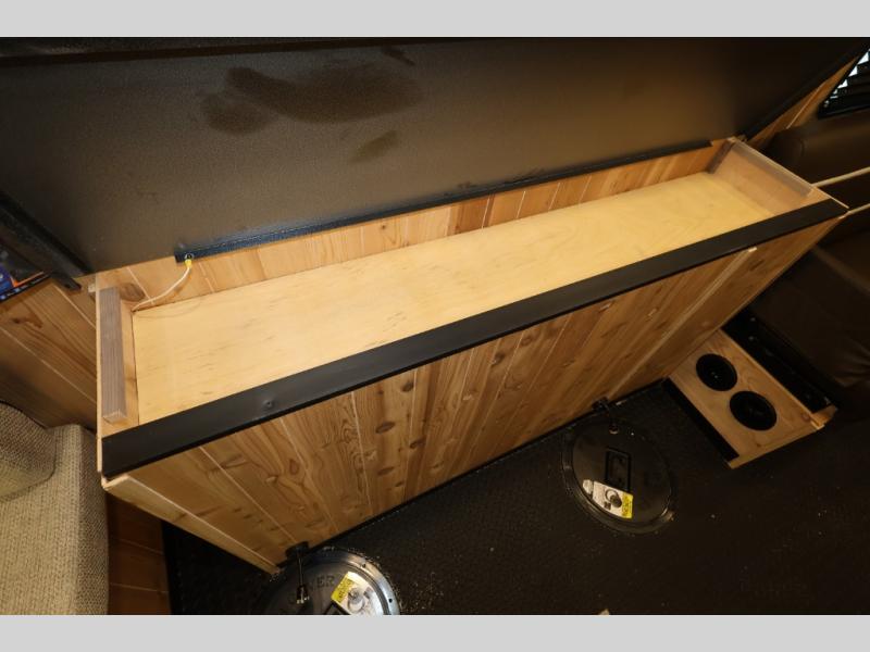 The Cherokee Grey Wolf fish houses by Forest River are constructed with a fully walkable residential trussed roof system, dual pane windows, and a thermofoil wrapped roof for additional insulation. You will also find a heavy duty rubber floor, a diamond plate exterior base, and a V-nose design for better towability. There is convenient rod storage inside, along with multiple fishing holes, LED fishing hole lights, and a 12V refrigerator!