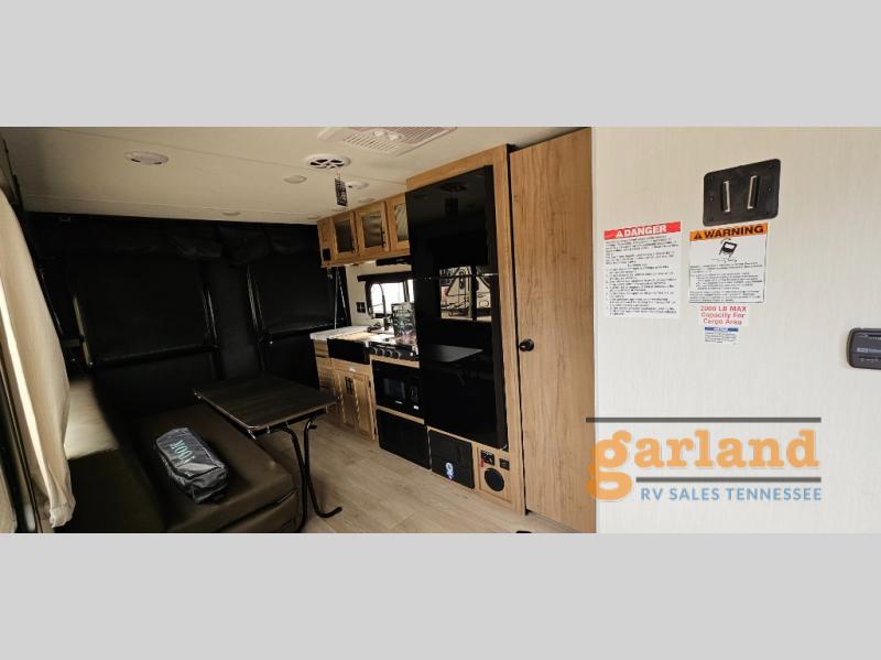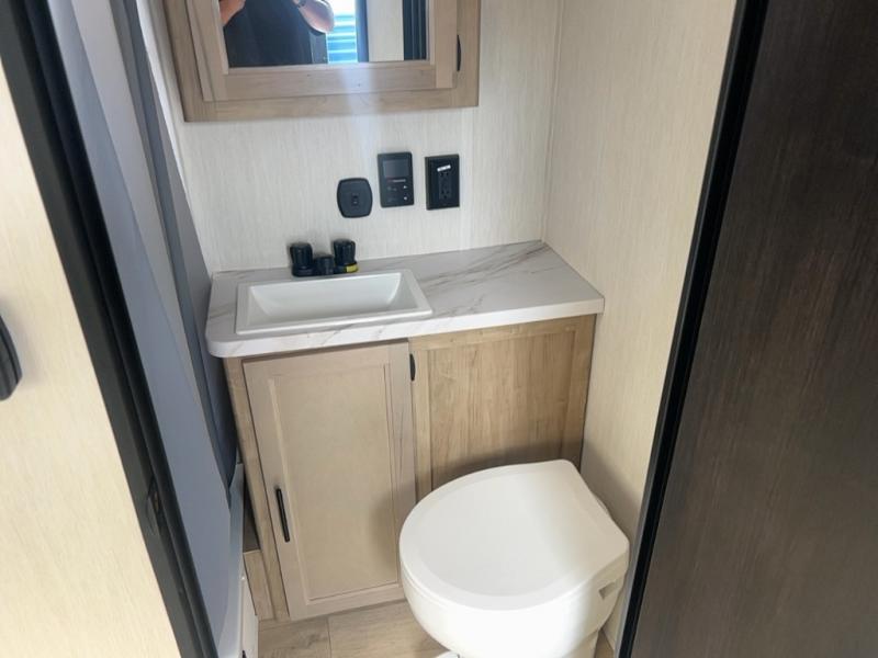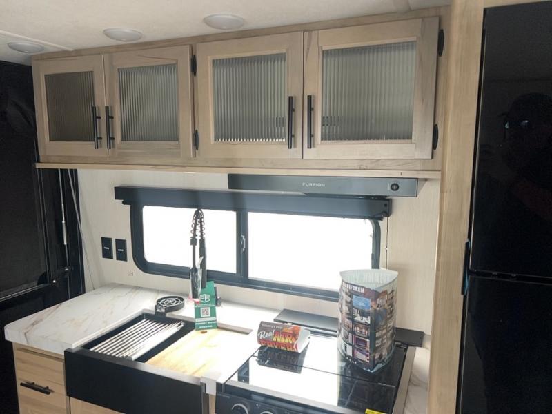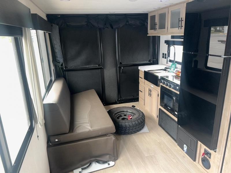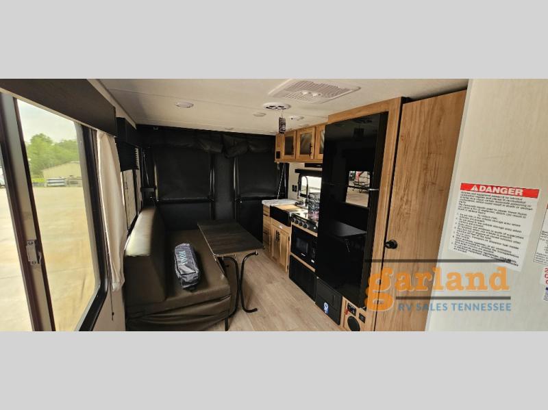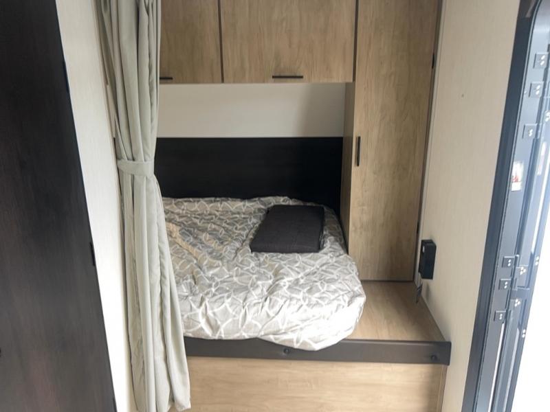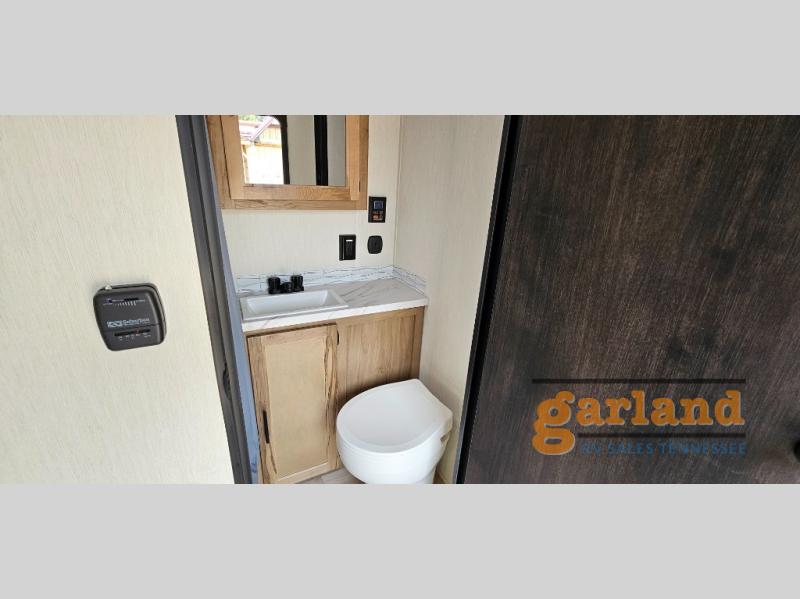 You will undoubtedly love this Cherokee Grey Wolf toy hauler! Because of its ability to have up to 15' 2" of cargo space, you can easily load up the ramp door and head out to your outdoor toy land, and you can bring much more than just your toys since this trailer also comes with exterior storage, a bedside wardrobe, overhead cabinets, an 10-cubic foot refrigerator, and a kitchen pantry. The full bathroom is another feature that is going to allow you to experience a true getaway since you won't need to find public facilities to use while you're gone, and the USB charging stations will allow you to charge your phone inside while you're outside playing.