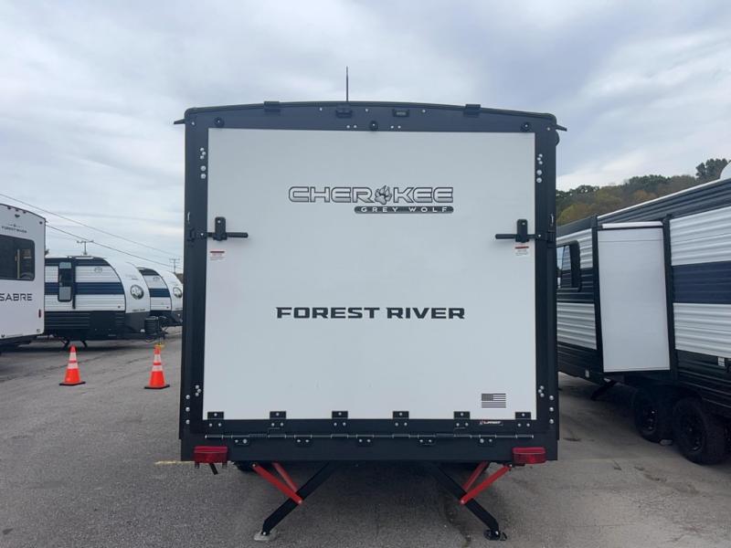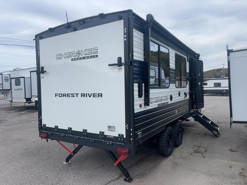 Whether it's a journey that will take you to new locations or a tried-and-true getaway to that favorite and memorable destination, the Forest River Cherokee Grey Wolf travel trailers and toy haulers are going to make the trip worth it every single time! You can travel in confidence with the premium wheel package, seamless roofing membrane with heat reflectivity, Power Gear frame technology with space-saver rail design, and Cherokee back-up camera system. The Cherokee Grey Wolf's interior is highly attractive with its stainless steel kitchen suite package and premium bedding ensemble and comforter. You will also find a black waste tank flush-out kit, an outside shower with hot and cold water, an armored underbelly tank enclosure, and an RV grill quick connect.