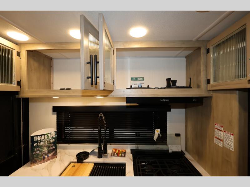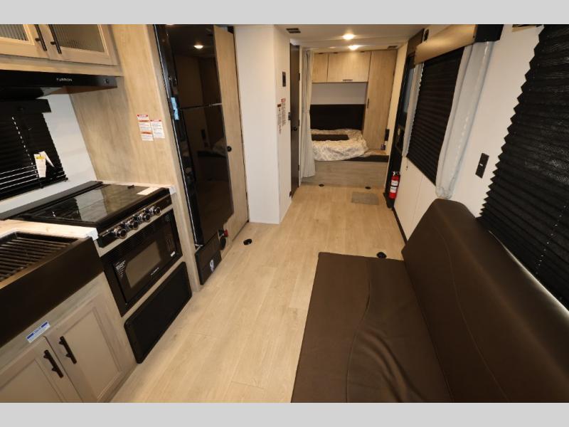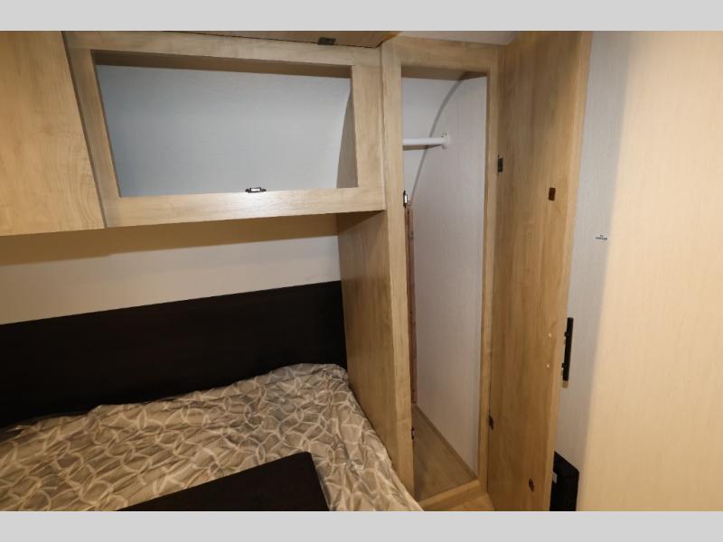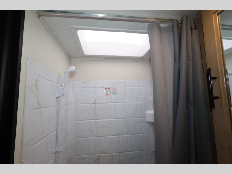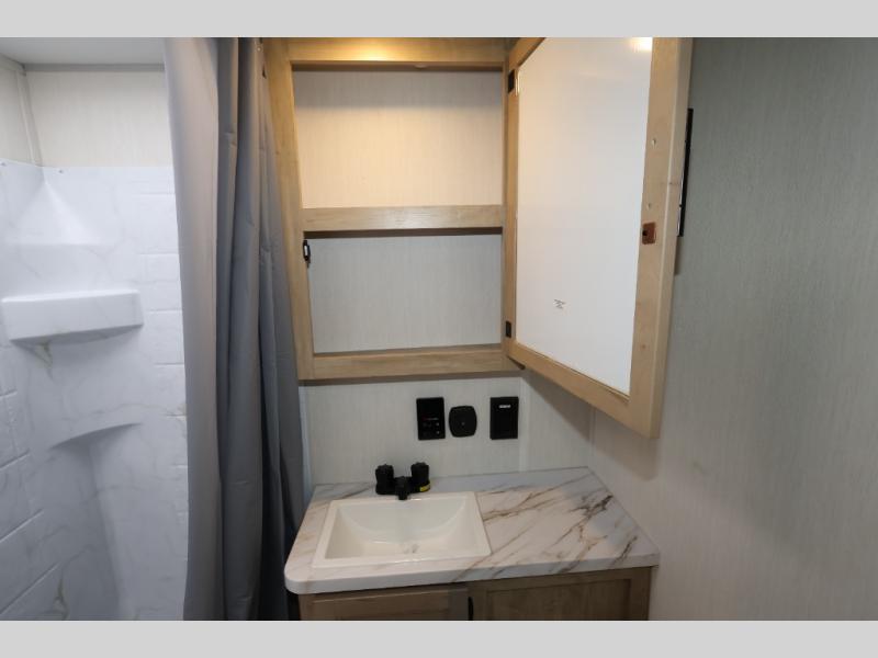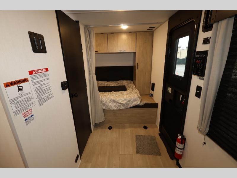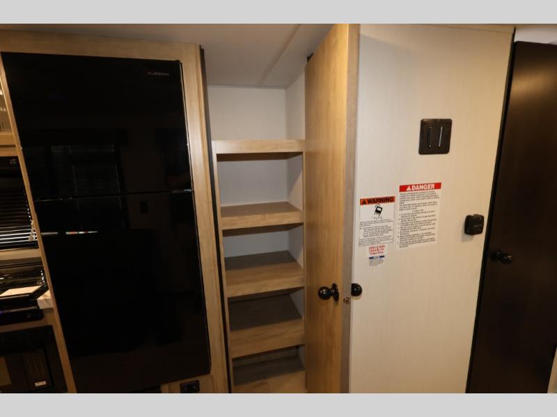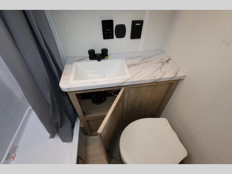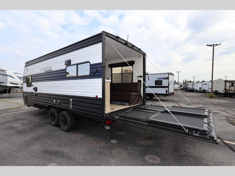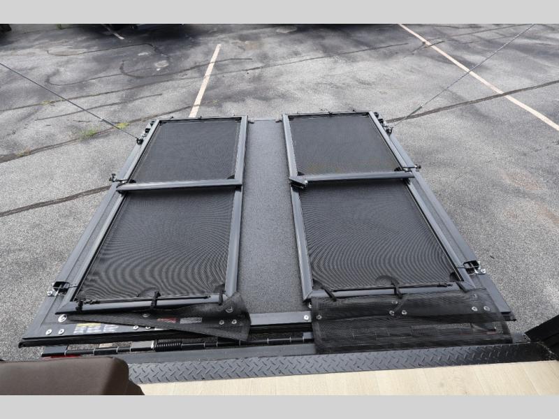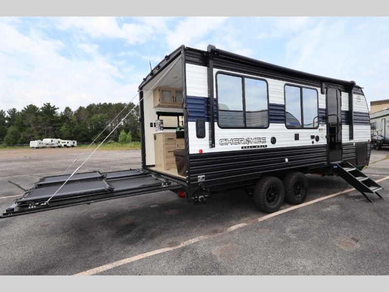 You will undoubtedly love this Cherokee Grey Wolf toy hauler! Because of its ability to have up to 15' 2" of cargo space, you can easily load up the ramp door and head out to your outdoor toy land, and you can bring much more than just your toys since this trailer also comes with exterior storage, a bedside wardrobe, overhead cabinets, an 10-cubic foot refrigerator, and a kitchen pantry. The full bathroom is another feature that is going to allow you to experience a true getaway since you won't need to find public facilities to use while you're gone, and the USB charging stations will allow you to charge your phone inside while you're outside playing.