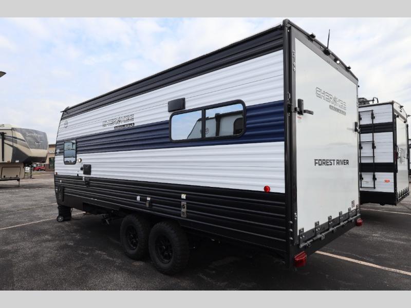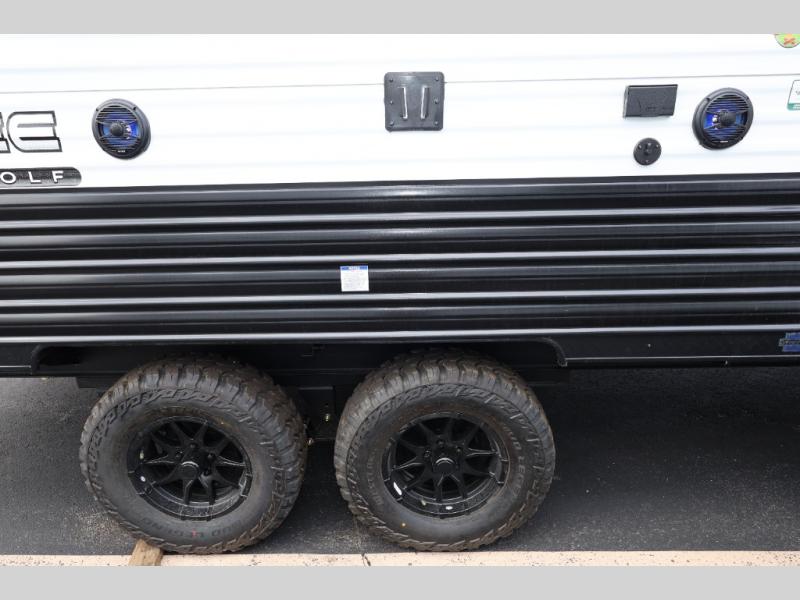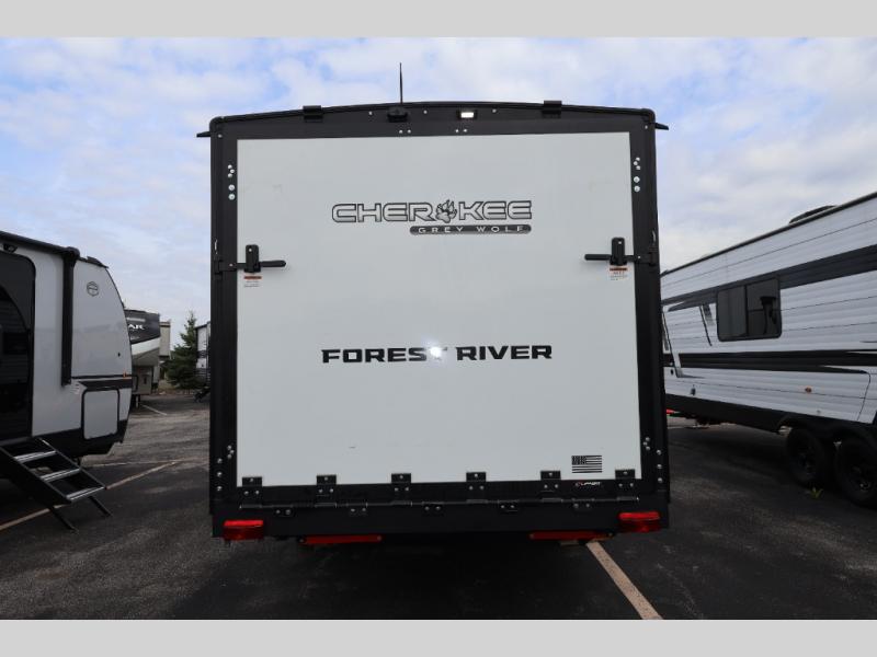Whether it's a journey that will take you to new locations or a tried-and-true getaway to that favorite and memorable destination, the Forest River Cherokee Grey Wolf travel trailers and toy haulers are going to make the trip worth it every single time! You can travel in confidence with the premium wheel package, seamless roofing membrane with heat reflectivity, Power Gear frame technology with space-saver rail design, and Cherokee back-up camera system. The Cherokee Grey Wolf's interior is highly attractive with its stainless steel kitchen suite package and premium bedding ensemble and comforter. You will also find a black waste tank flush-out kit, an outside shower with hot and cold water, an armored underbelly tank enclosure, and an RV grill quick connect.