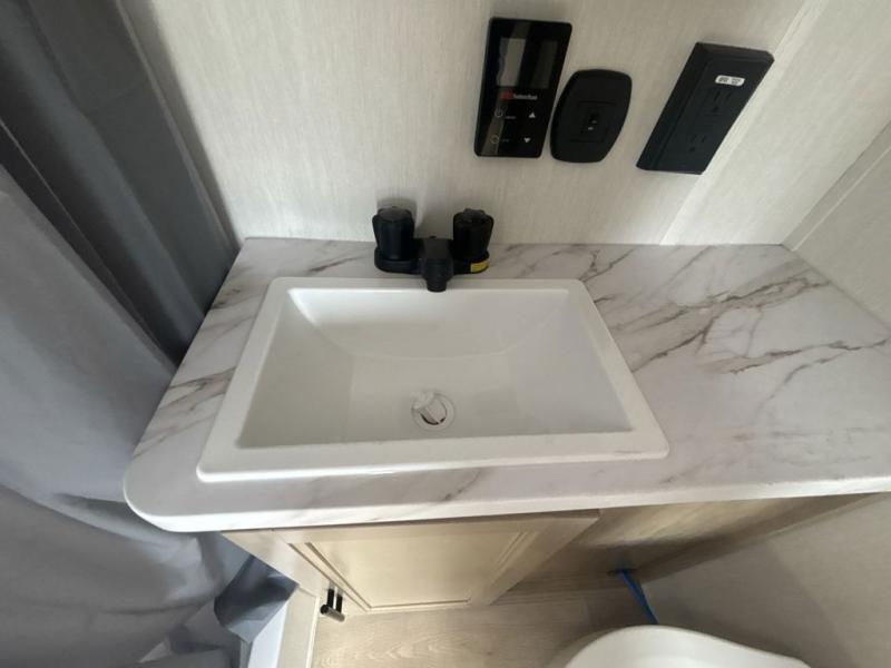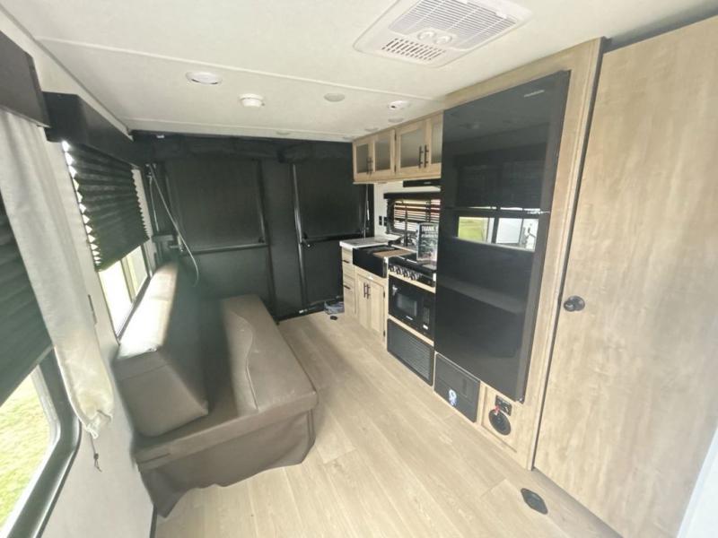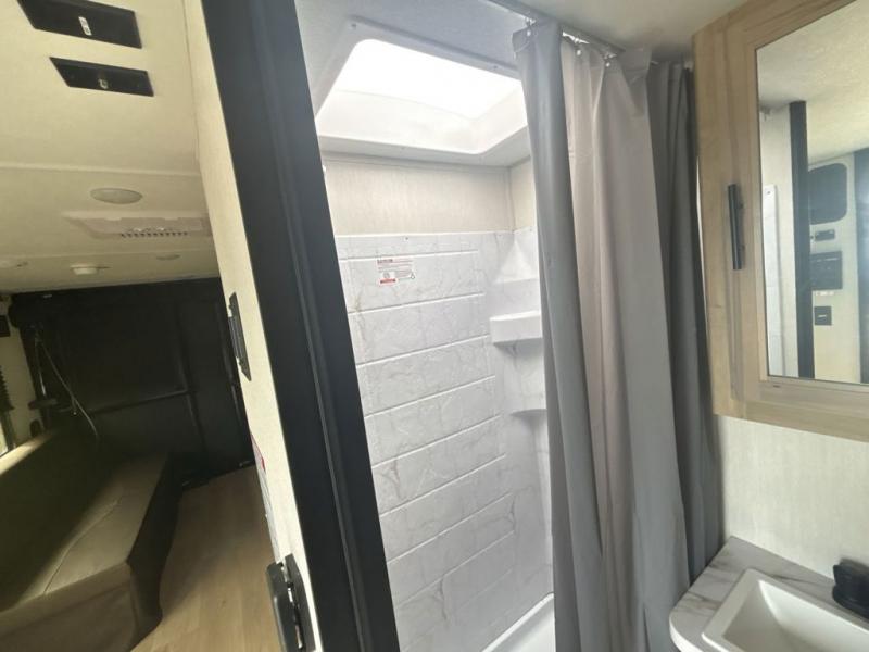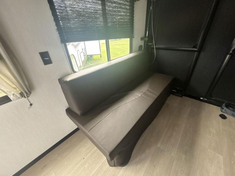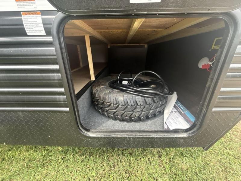 You will undoubtedly love this Cherokee Grey Wolf toy hauler! Because of its ability to have up to 15' 2" of cargo space, you can easily load up the ramp door and head out to your outdoor toy land, and you can bring much more than just your toys since this trailer also comes with exterior storage, a bedside wardrobe, overhead cabinets, an 10-cubic foot refrigerator, and a kitchen pantry. The full bathroom is another feature that is going to allow you to experience a true getaway since you won't need to find public facilities to use while you're gone, and the USB charging stations will allow you to charge your phone inside while you're outside playing.