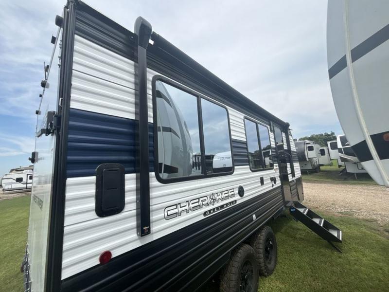 Whether it's a journey that will take you to new locations or a tried-and-true getaway to that favorite and memorable destination, the Forest River Cherokee Grey Wolf travel trailers and toy haulers are going to make the trip worth it every single time! You can travel in confidence with the premium wheel package, seamless roofing membrane with heat reflectivity, Power Gear frame technology with space-saver rail design, and Cherokee back-up camera system. The Cherokee Grey Wolf's interior is highly attractive with its stainless steel kitchen suite package and premium bedding ensemble and comforter. You will also find a black waste tank flush-out kit, an outside shower with hot and cold water, an armored underbelly tank enclosure, and an RV grill quick connect.