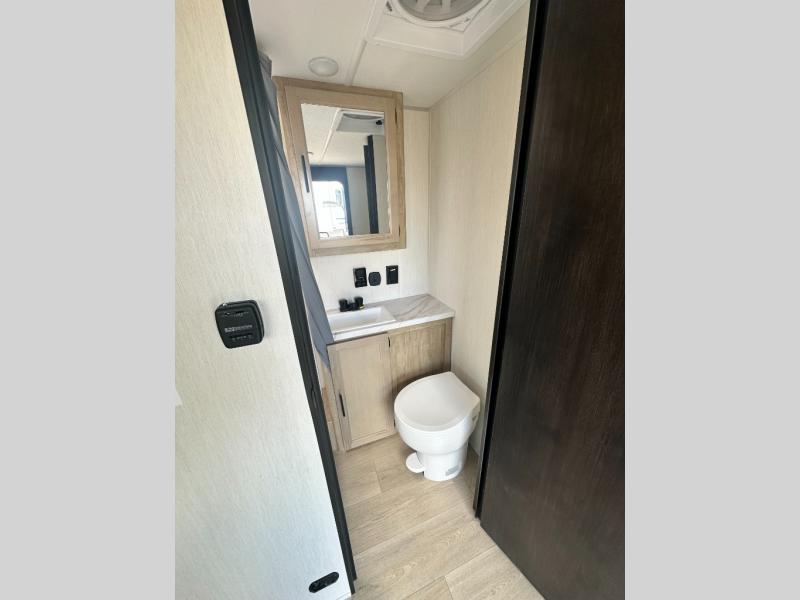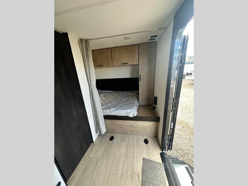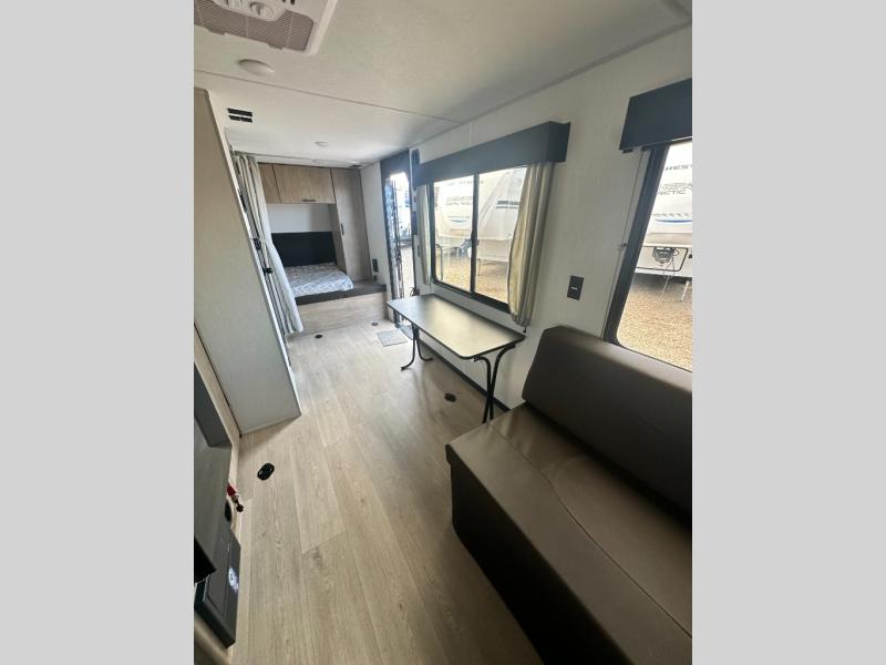 You will undoubtedly love this Cherokee Grey Wolf toy hauler! Because of its ability to have up to 15' 2" of cargo space, you can easily load up the ramp door and head out to your outdoor toy land, and you can bring much more than just your toys since this trailer also comes with exterior storage, a bedside wardrobe, overhead cabinets, a refrigerator, and a kitchen pantry. The full bathroom is another feature that is going to allow you to experience a true getaway since you won't need to find public facilities to use while you're gone, and the USB charging stations will allow you to charge your phone inside while you're outside playing.