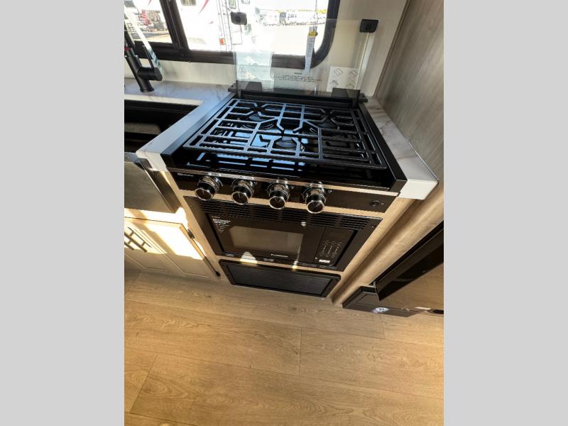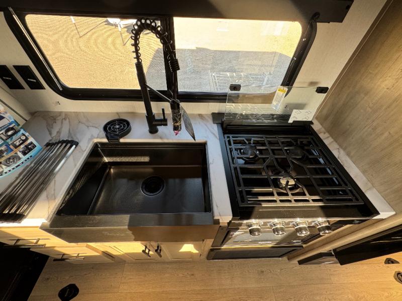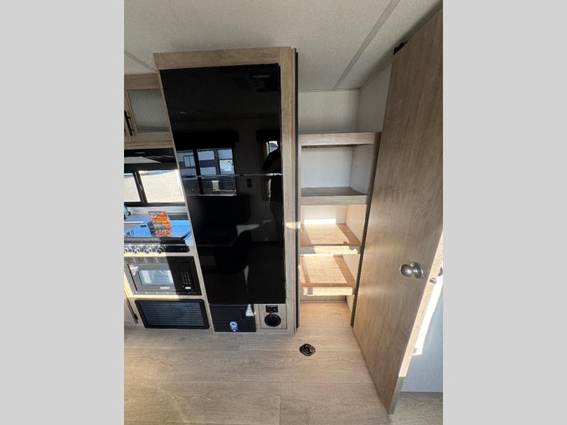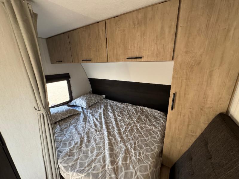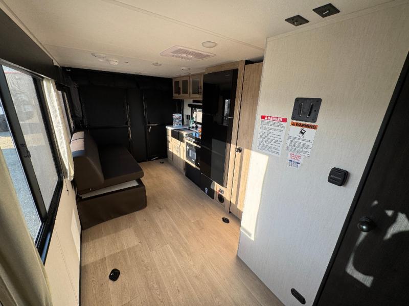 You will undoubtedly love this Cherokee Grey Wolf toy hauler! Because of its ability to have up to 15' 2" of cargo space, you can easily load up the ramp door and head out to your outdoor toy land, and you can bring much more than just your toys since this trailer also comes with exterior storage, a bedside wardrobe, overhead cabinets, a refrigerator, and a kitchen pantry. The full bathroom is another feature that is going to allow you to experience a true getaway since you won't need to find public facilities to use while you're gone, and the USB charging stations will allow you to charge your phone inside while you're outside playing.