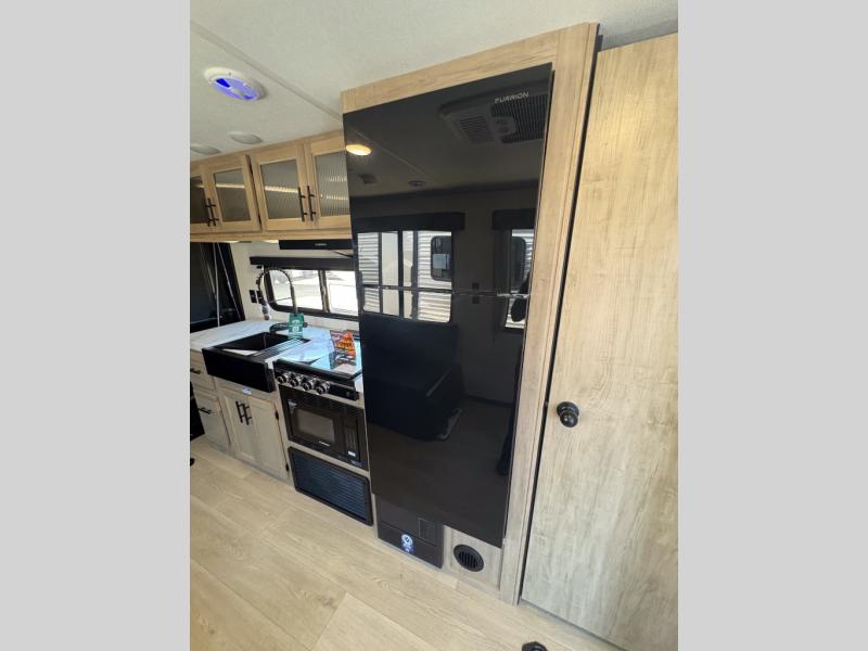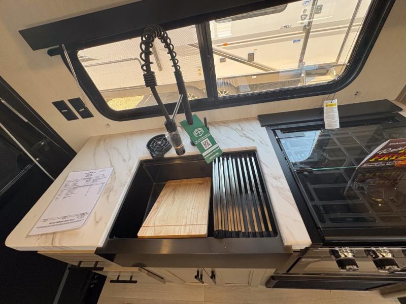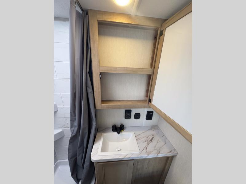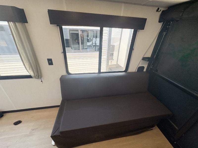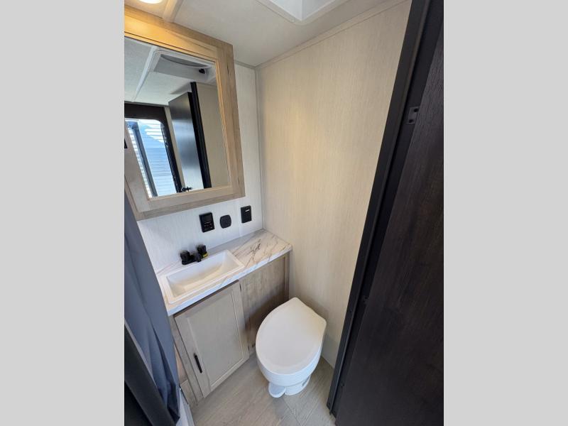 You will undoubtedly love this Cherokee Grey Wolf toy hauler! Because of its ability to have up to 15' 2" of cargo space, you can easily load up the ramp door and head out to your outdoor toy land, and you can bring much more than just your toys since this trailer also comes with exterior storage, a bedside wardrobe, overhead cabinets, a refrigerator, and a kitchen pantry. The full bathroom is another feature that is going to allow you to experience a true getaway since you won't need to find public facilities to use while you're gone, and the USB charging stations will allow you to charge your phone inside while you're outside playing.