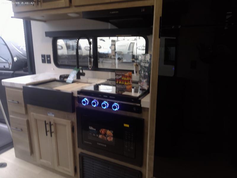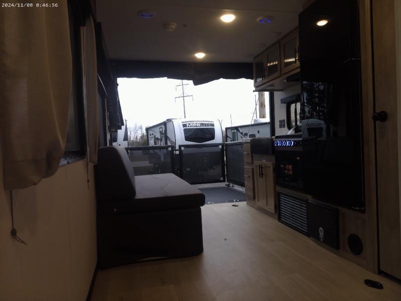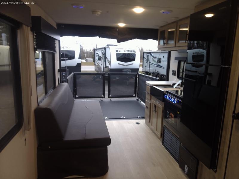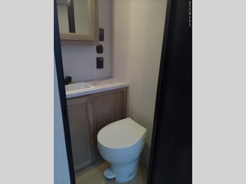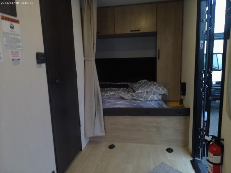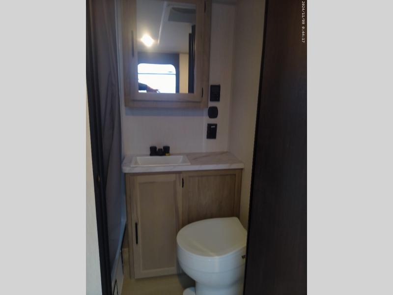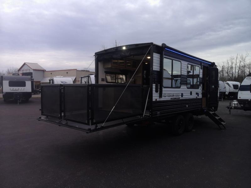 You will undoubtedly love this Cherokee Grey Wolf toy hauler! Because of its ability to have up to 15' 2" of cargo space, you can easily load up the ramp door and head out to your outdoor toy land, and you can bring much more than just your toys since this trailer also comes with exterior storage, a bedside wardrobe, overhead cabinets, a refrigerator, and a kitchen pantry. The full bathroom is another feature that is going to allow you to experience a true getaway since you won't need to find public facilities to use while you're gone, and the USB charging stations will allow you to charge your phone inside while you're outside playing.