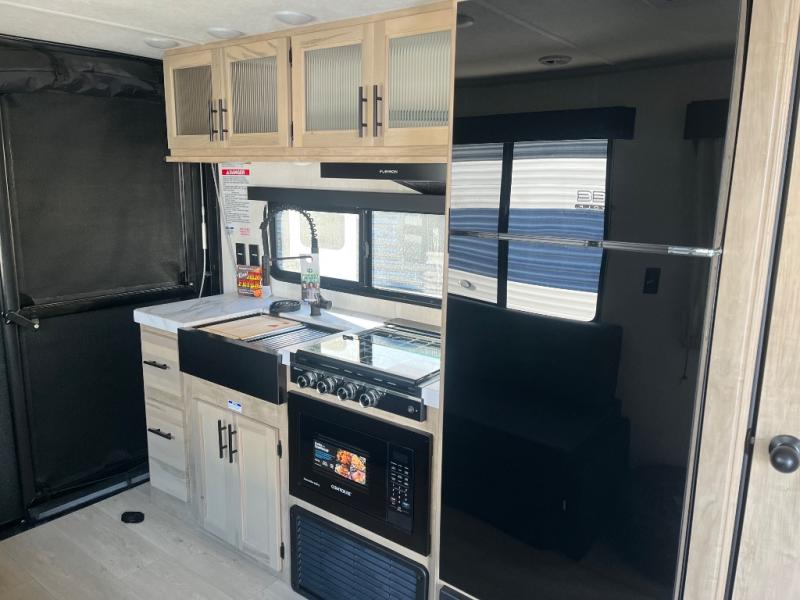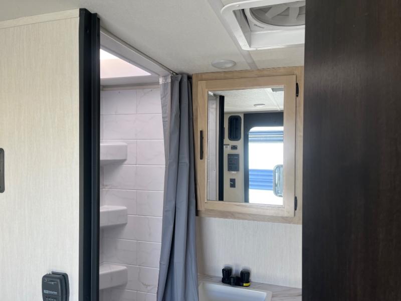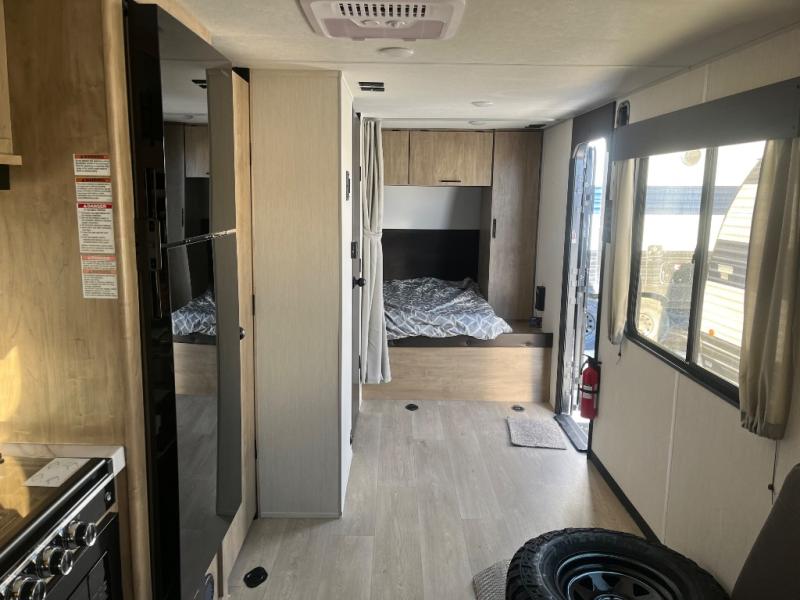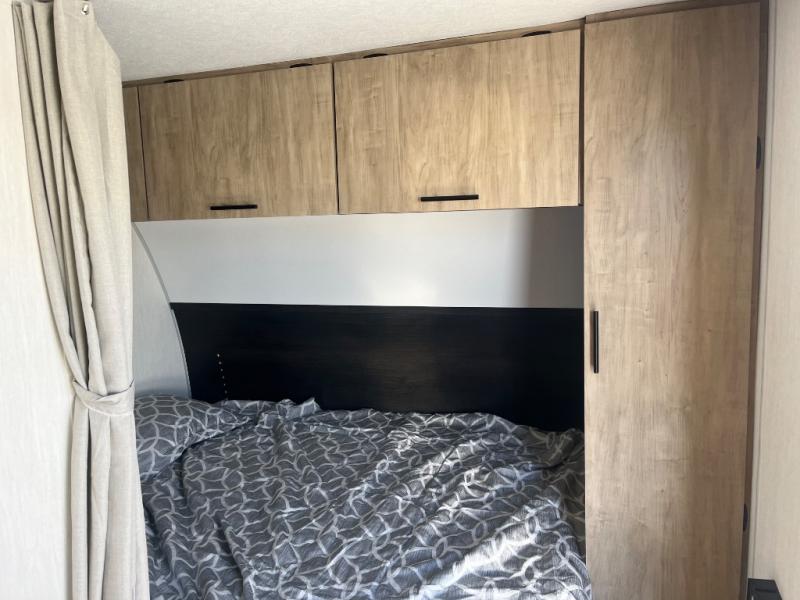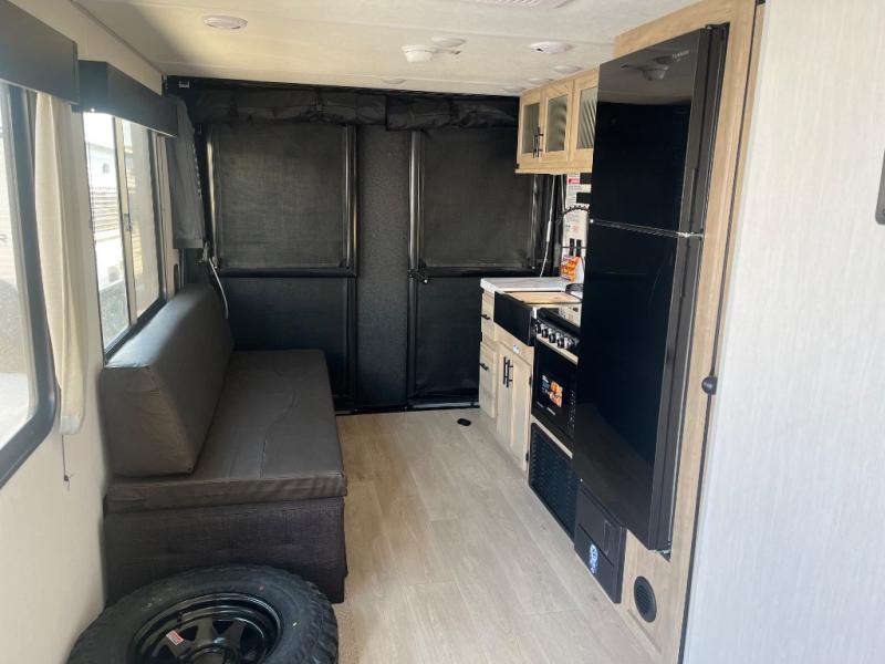 You will undoubtedly love this Cherokee Grey Wolf toy hauler! Because of its ability to have up to 15' 2" of cargo space, you can easily load up the ramp door and head out to your outdoor toy land, and you can bring much more than just your toys since this trailer also comes with exterior storage, a bedside wardrobe, overhead cabinets, a refrigerator, and a kitchen pantry. The full bathroom is another feature that is going to allow you to experience a true getaway since you won't need to find public facilities to use while you're gone, and the USB charging stations will allow you to charge your phone inside while you're outside playing.