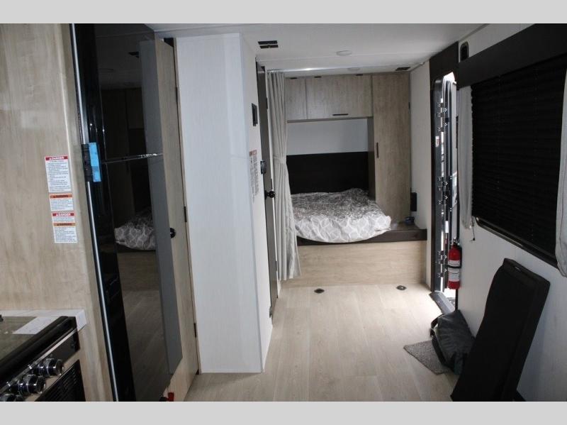 You will undoubtedly love this Cherokee Grey Wolf toy hauler! Because of its ability to have up to 15' 2" of cargo space, you can easily load up the ramp door and head out to your outdoor toy land, and you can bring much more than just your toys since this trailer also comes with exterior storage, a bedside wardrobe, overhead cabinets, a refrigerator, and a kitchen pantry. The full bathroom is another feature that is going to allow you to experience a true getaway since you won't need to find public facilities to use while you're gone, and the USB charging stations will allow you to charge your phone inside while you're outside playing.