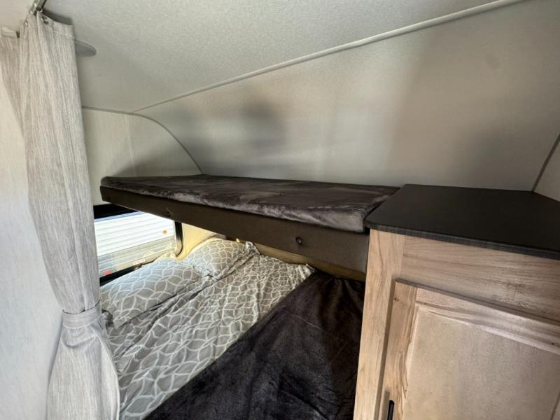 A family of seven or eight can enjoy many outdoor adventures in this Cherokee Grey Wolf travel trailer which features two queen beds and a bunk above the front bed. With the rear queen bed slide, you gain sleeping space without having additional tow length added. You will find large overhead cabinets inside, a pantry to bring along your favorite snacks, and a wardrobe for keeping your clothes wrinkle free. There is a booth dinette for you to enjoy your meals at or play some card games, and there is also a sofa for those who just want to sit back and watch. A conveniently located bathroom that sits directly across from the main entry makes it easy to access from outside. There is also a nice 15' power awning for creating additional living space so that you can enjoy the outdoors whether rain or shine!
