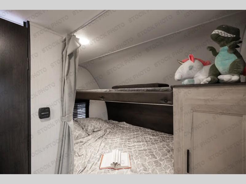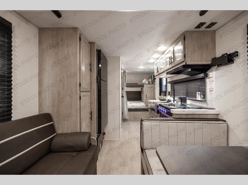 A family of six or seven can enjoy many outdoor adventures in this Cherokee Grey Wolf travel trailer which features two queen beds and a bunk above the front bed. With the rear queen bed slide, you gain sleeping space without having additional tow length added. You will find large overhead cabinets inside, a pantry to bring along your favorite snacks, and a wardrobe for keeping your clothes wrinkle free. There is a booth dinette for you to enjoy your meals at or play some card games, and there is also a sofa for those who just want to sit back and watch. A conveniently located bathroom that sits directly across from the main entry makes it easy to access from outside. There is also a nice 15' awning for creating additional living space so that you can enjoy the outdoors whether rain or shine!