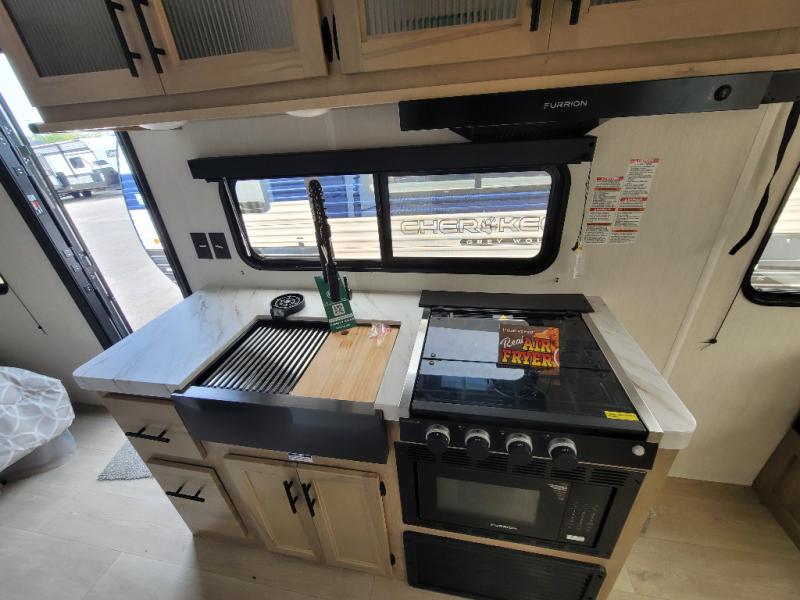 Whether it's a journey that will take you to new locations or a tried-and-true getaway to that favorite and memorable destination, the Forest River Cherokee Grey Wolf travel trailers and toy haulers are going to make the trip worth it every single time! You can travel in confidence with the premium wheel package, seamless roofing membrane with heat reflectivity, Power Gear frame technology with space-saver rail design, and Cherokee back-up camera system. The Cherokee Grey Wolf's interior is highly attractive with its stainless steel kitchen suite package and premium bedding ensemble and comforter. You will also find a black waste tank flush-out kit, an outside shower with hot and cold water, an armored underbelly tank enclosure, and an RV grill quick connect.