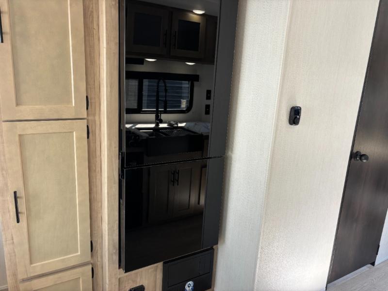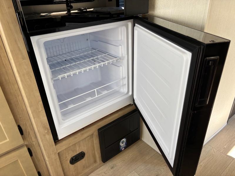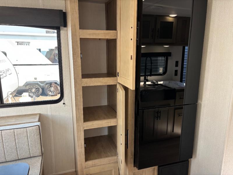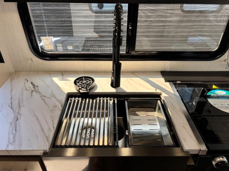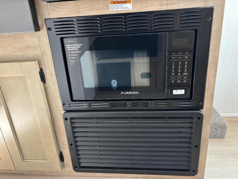 Time spent at the campground in this well designed travel trailer will be time well spent! The front bedroom includes a walk-around RV king bed, dual bedroom wardrobes plus USB ports to charge your phone or laptop. You can whip up breakfast in the modern kitchen that includes an air fryer, then dine around the U-shaped dinette with a panoramic window. This area can also double as sleeping space for one to two guests as well! A pantry will let you stock up on snacks and the TV mount means you can bring along a television if you want to enjoy movie nights. There is also a full bath with a tub/shower where you can freshen up each day!