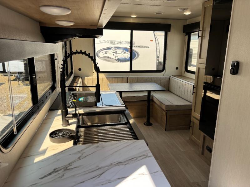 Whether it's a journey that will take you to new locations or a tried-and-true getaway to that favorite and memorable destination, the Forest River Cherokee Grey Wolf travel trailers and toy haulers are going to make the trip worth it every single time! You can travel in confidence with the premium wheel package, seamless roofing membrane with heat reflectivity, Power Gear frame technology with space-saver rail design, and Cherokee back-up camera system. The Cherokee Grey Wolf's interior is highly attractive with its stainless steel kitchen suite package and premium bedding ensemble and comforter. You will also find a black waste tank flush-out kit, an outside shower with hot and cold water, an armored underbelly tank enclosure, and an RV grill quick connect.