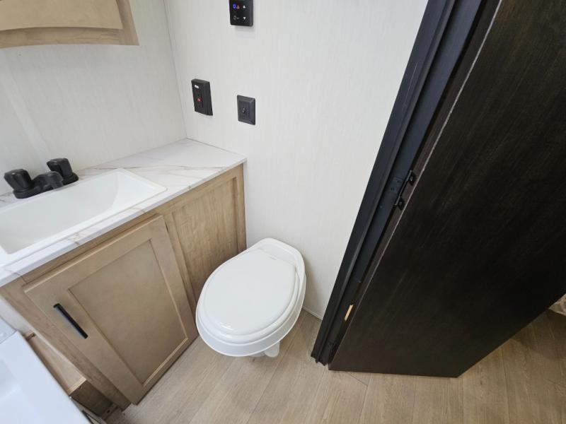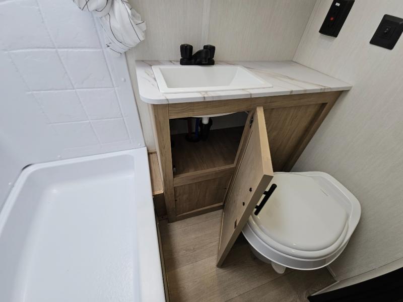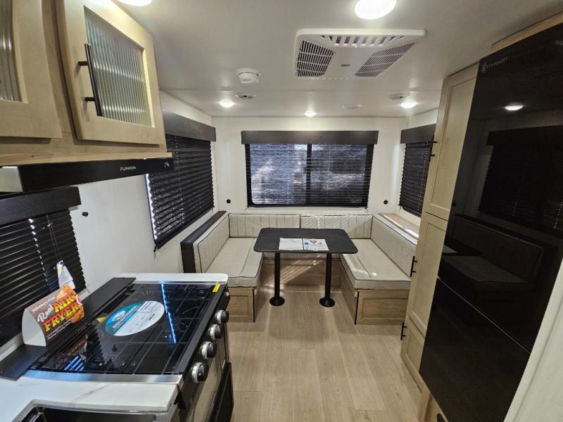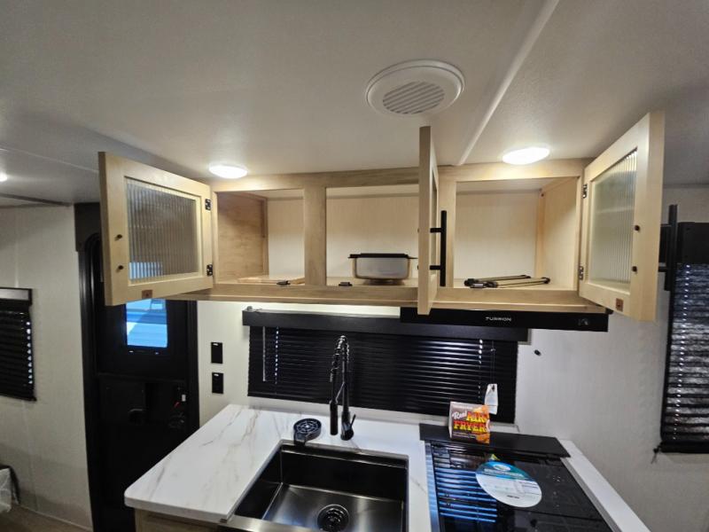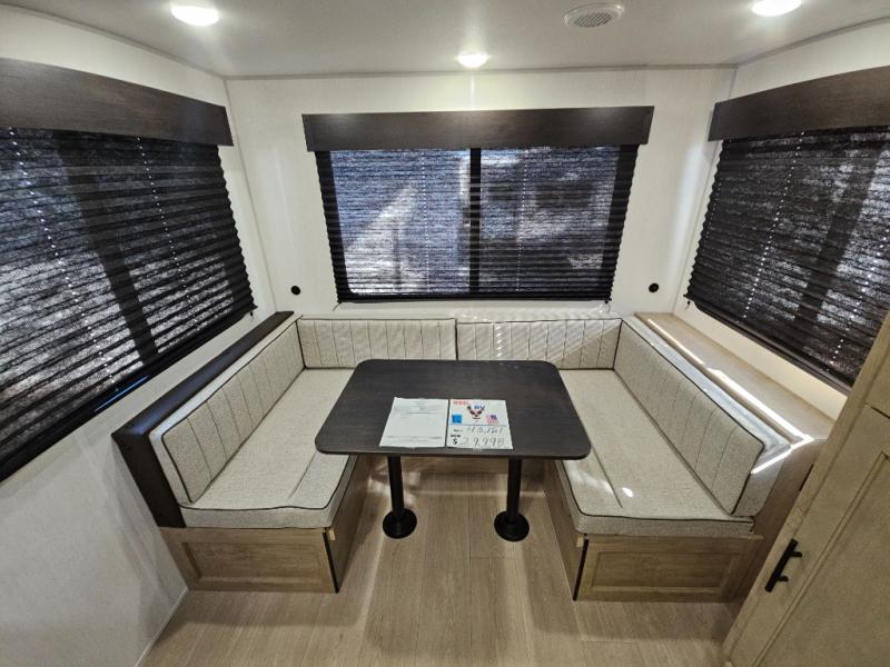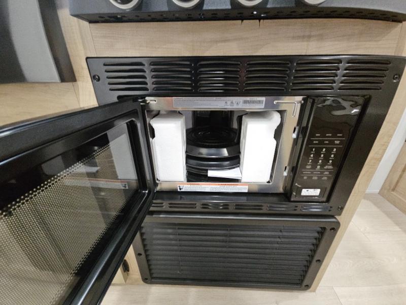 Time spent at the campground in this well designed travel trailer will be time well spent! The front bedroom includes a walk-around RV king bed, dual bedroom wardrobes plus USB ports to charge your phone or laptop. You can whip up breakfast in the modern kitchen that includes an air fryer, then dine around the U-shaped dinette with a panoramic window. This area can also double as sleeping space for one to two guests as well! A pantry will let you stock up on snacks and the TV mount means you can bring along a television if you want to enjoy movie nights. There is also a full bath with a tub/shower where you can freshen up each day!