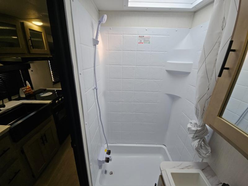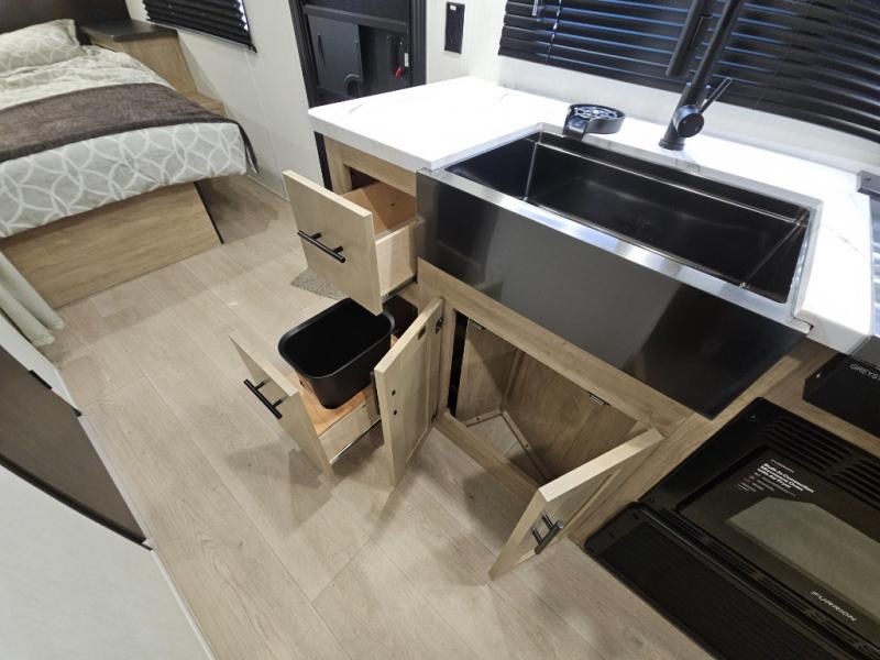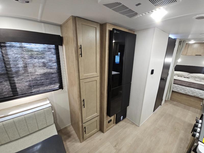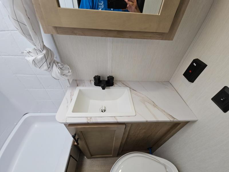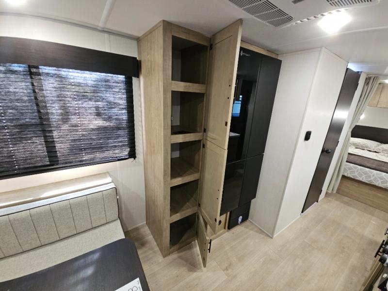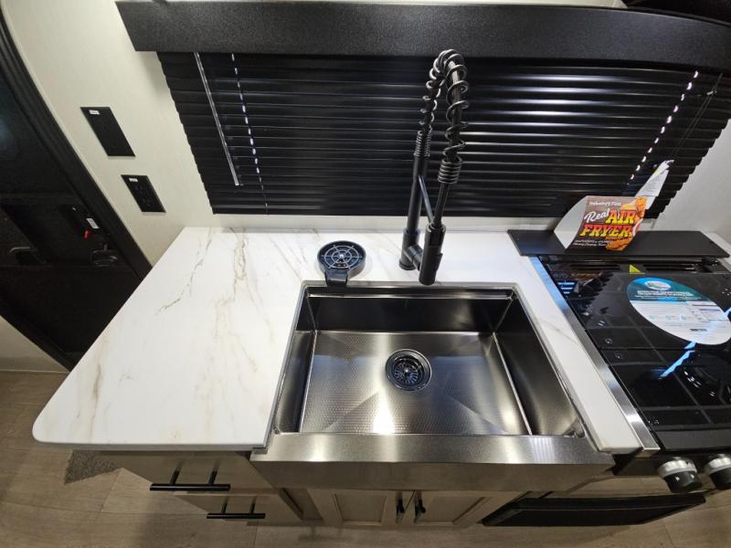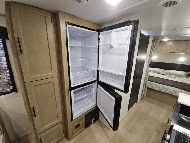 Time spent at the campground in this well designed travel trailer will be time well spent! The front bedroom includes a walk-around RV king bed, dual bedroom wardrobes plus USB ports to charge your phone or laptop. You can whip up breakfast in the modern kitchen that includes an air fryer, then dine around the U-shaped dinette with a panoramic window. This area can also double as sleeping space for one to two guests as well! A pantry will let you stock up on snacks and the TV mount means you can bring along a television if you want to enjoy movie nights. There is also a full bath with a tub/shower where you can freshen up each day!
