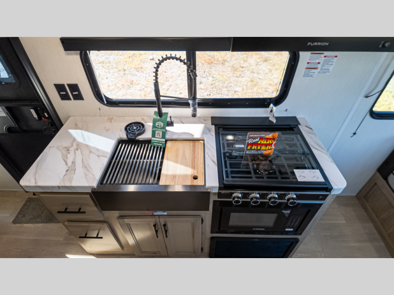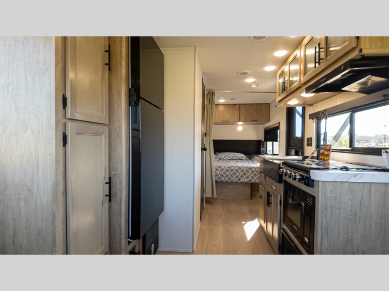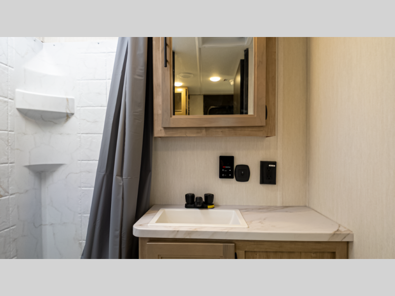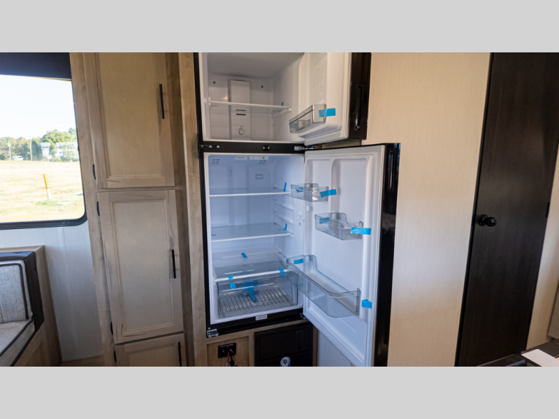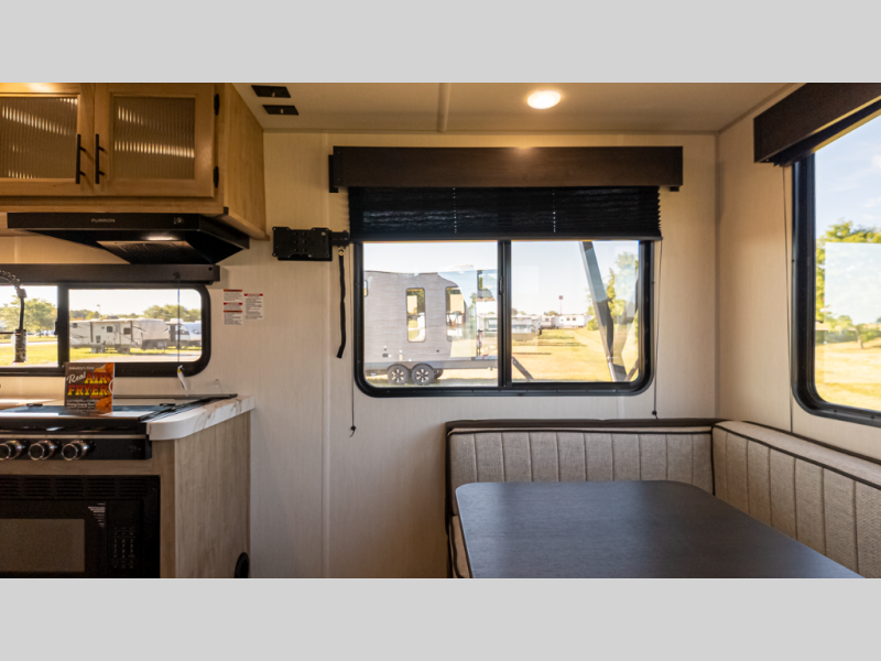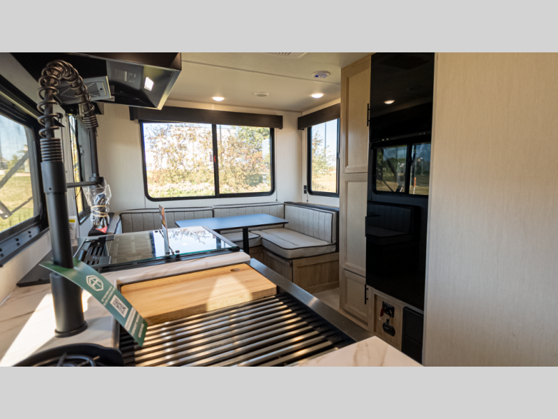 Time spent at the campground in this well designed travel trailer will be time well spent! The front bedroom includes a walk-around RV king bed, dual bedroom wardrobes plus USB ports to charge your phone or laptop. You can whip up breakfast in the modern kitchen that includes an air fryer, then dine around the U-shaped dinette with a panoramic window. This area can also double as sleeping space for one to two guests as well! A pantry will let you stock up on snacks and the TV mount means you can bring along a television if you want to enjoy movie nights. There is also a full bath with a tub/shower where you can freshen up each day!