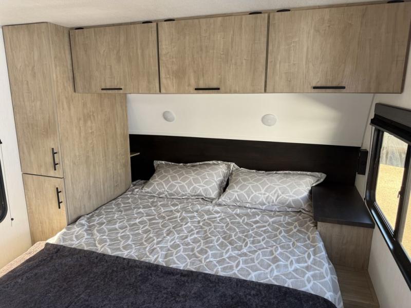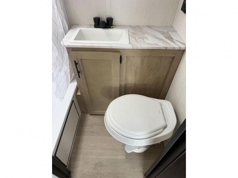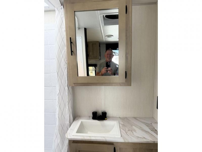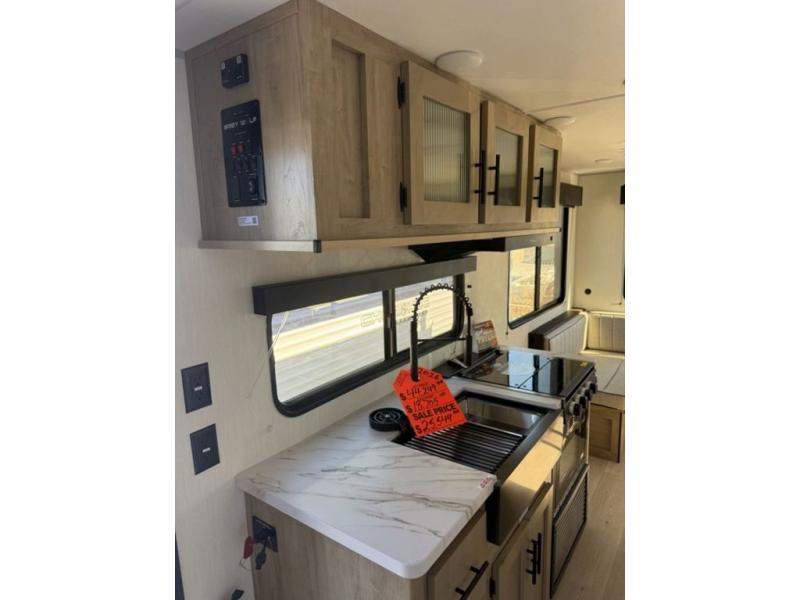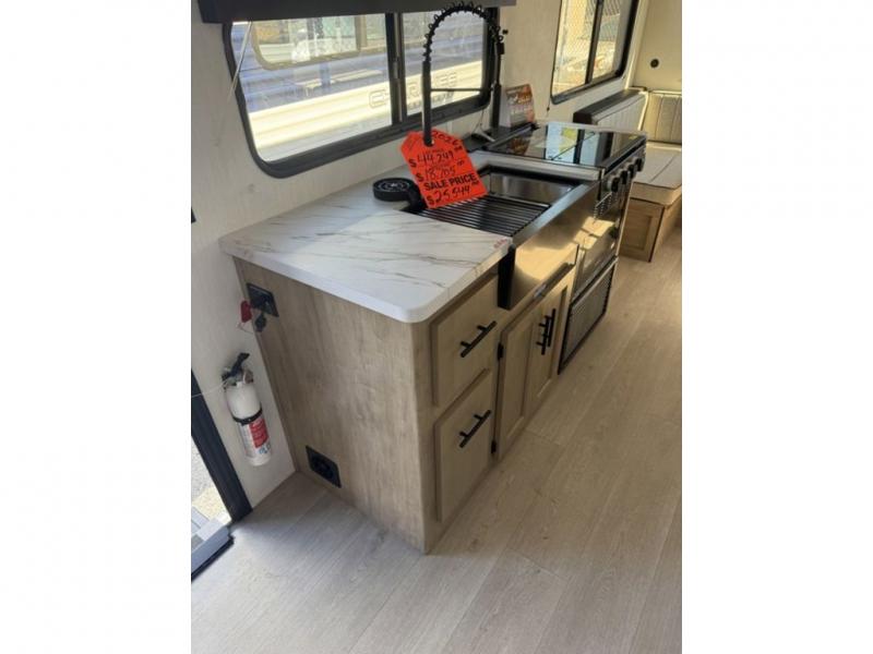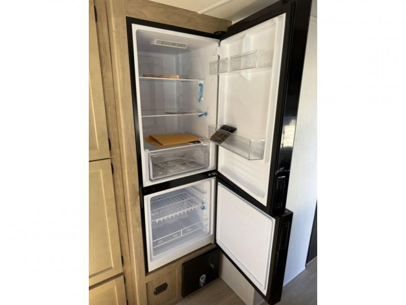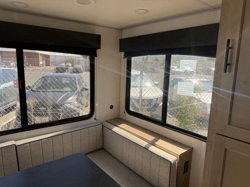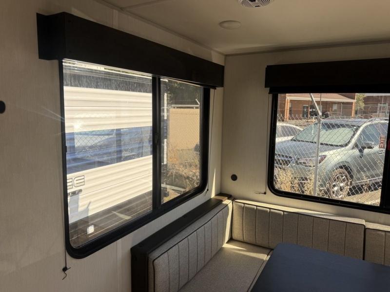 Time spent at the campground in this well designed travel trailer will be time well spent! The front bedroom includes a walk-around RV king bed, dual bedroom wardrobes plus USB ports to charge your phone or laptop. You can whip up breakfast in the modern kitchen that includes an air fryer, then dine around the U-shaped dinette with a panoramic window. This area can also double as sleeping space for one to two guests as well! A pantry will let you stock up on snacks and the TV mount means you can bring along a television if you want to enjoy movie nights. There is also a full bath with a tub/shower where you can freshen up each day!