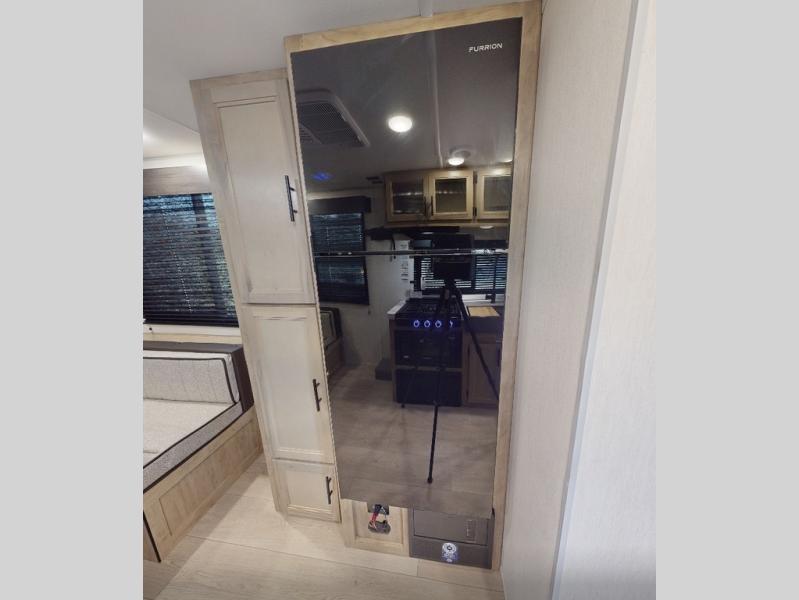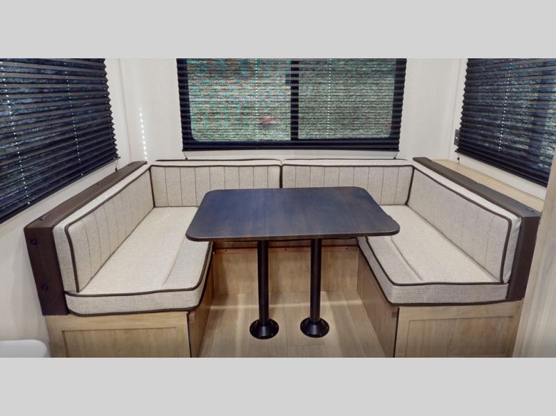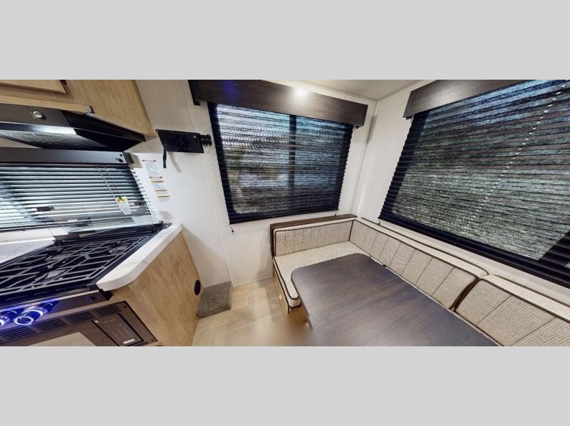 Time spent at the campground in this well designed travel trailer will be time well spent! The front bedroom includes a walk-around RV king bed, dual bedroom wardrobes plus USB ports to charge your phone or laptop. You can whip up breakfast in the modern kitchen that includes an air fryer, then dine around the U-shaped dinette with a panoramic window. This area can also double as sleeping space for one to two guests as well! A pantry will let you stock up on snacks and the TV mount means you can bring along a television if you want to enjoy movie nights. There is also a full bath with a tub/shower where you can freshen up each day!