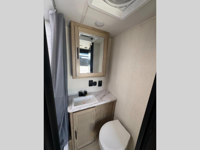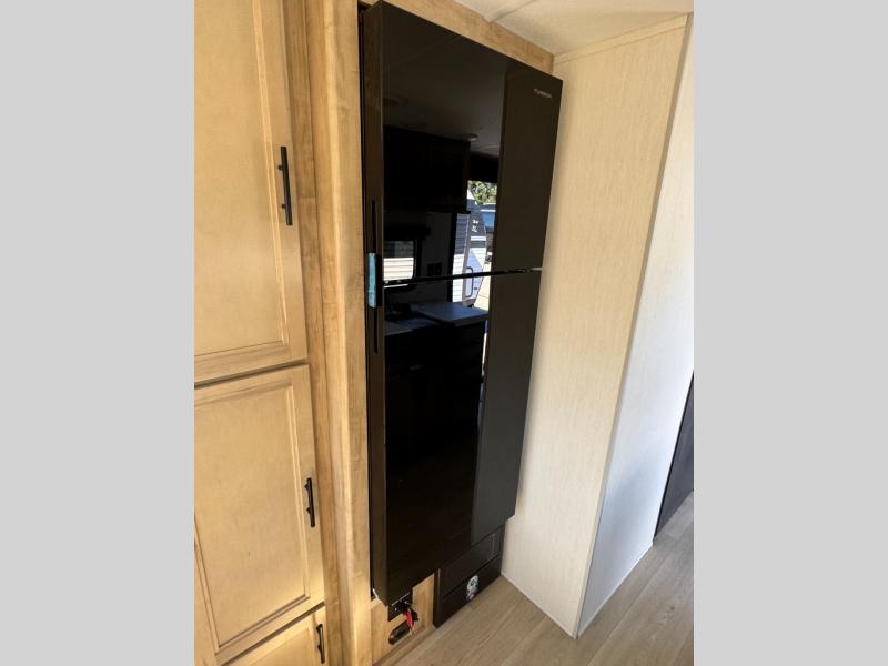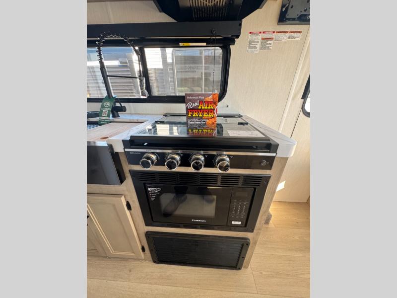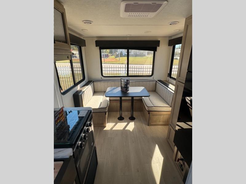 Time spent at the campground in this well designed travel trailer will be time well spent! The front bedroom includes a walk-around RV king bed, dual bedroom wardrobes plus USB ports to charge your phone or laptop. You can whip up breakfast in the modern kitchen that includes an air fryer, then dine around the U-shaped dinette with a panoramic window. This area can also double as sleeping space for one to two guests as well! A pantry will let you stock up on snacks and the TV mount means you can bring along a television if you want to enjoy movie nights. There is also a full bath with a tub/shower where you can freshen up each day!