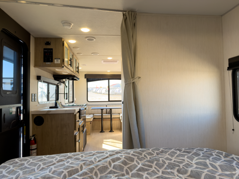 Compact footprint, big features: walk-around king bed, U-dinette, full bath, and full-size features in a ~25-ft layout