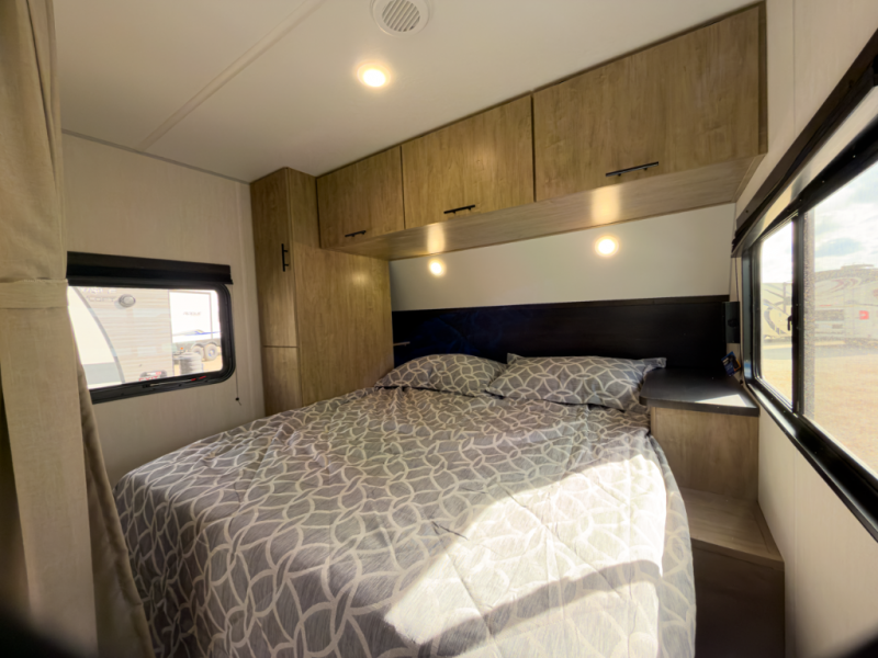 Walk-around king bed. Full bath. Rear lounge. The 20RDSE delivers real comfort in a compact, tow-easy length.
