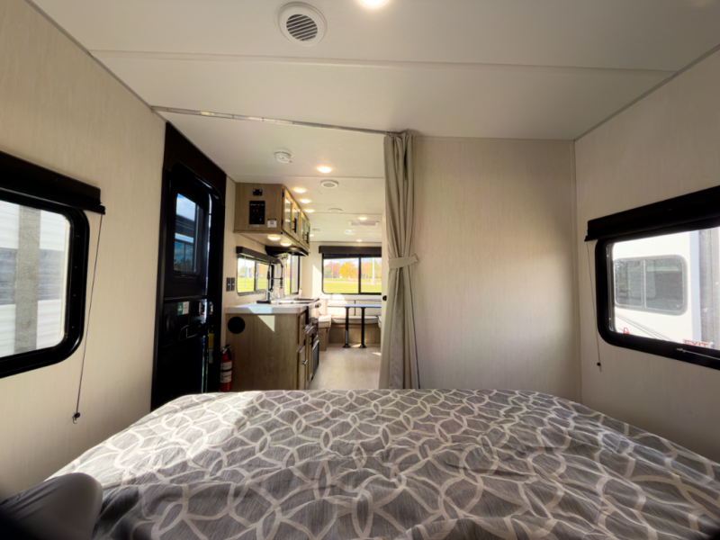 Compared to similar compact travel trailers from Jayco and Keystone, the 20RDSE prioritizes bed comfort and usable daytime living space. The result is a trailer that feels larger inside without growing longer outside.