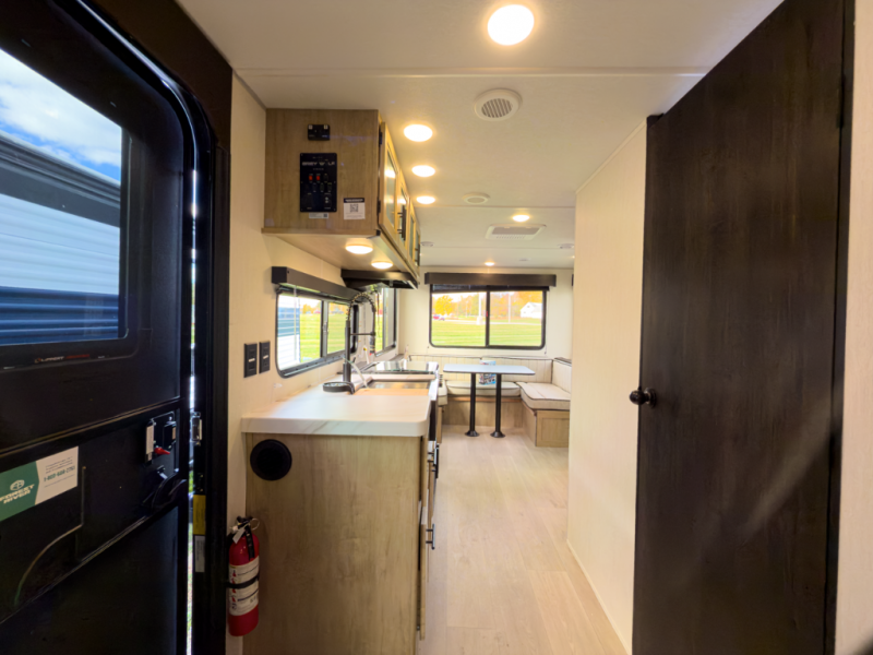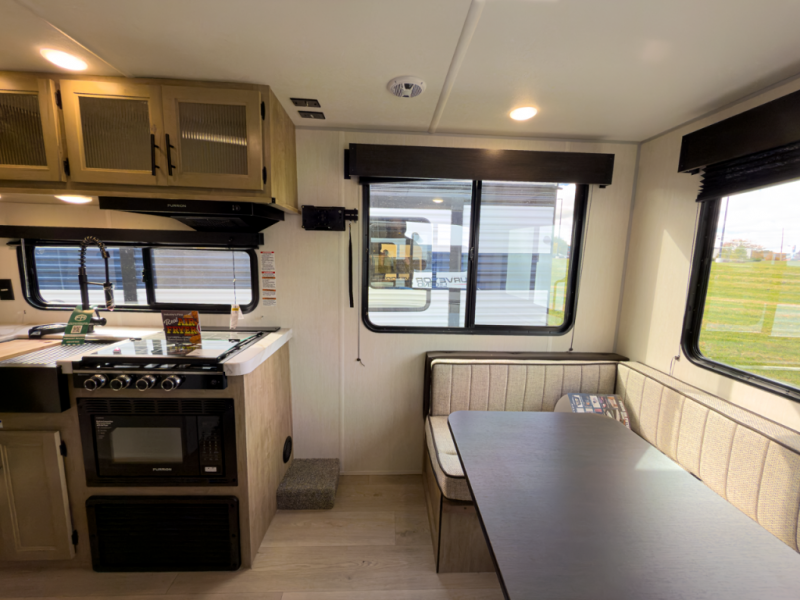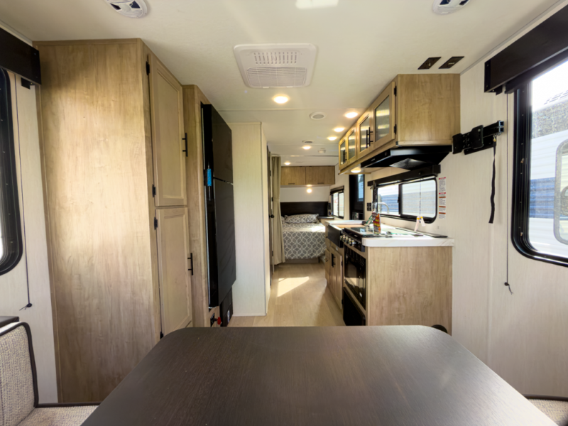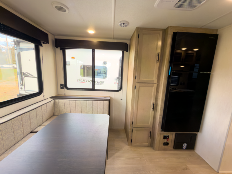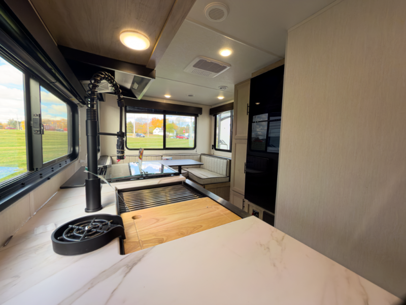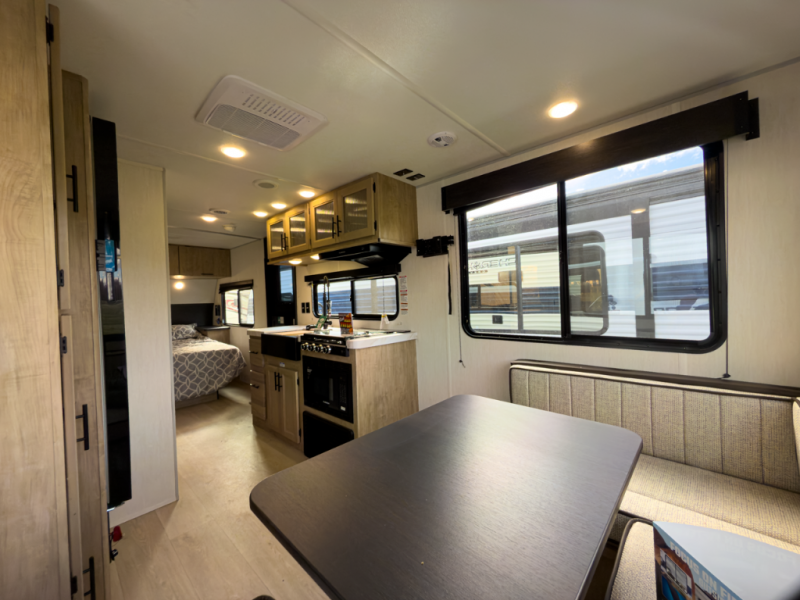 This layout is ideal for couples or solo travelers who want easy towing and real comfort on the road. The king bed and large dinette are the difference-makers.