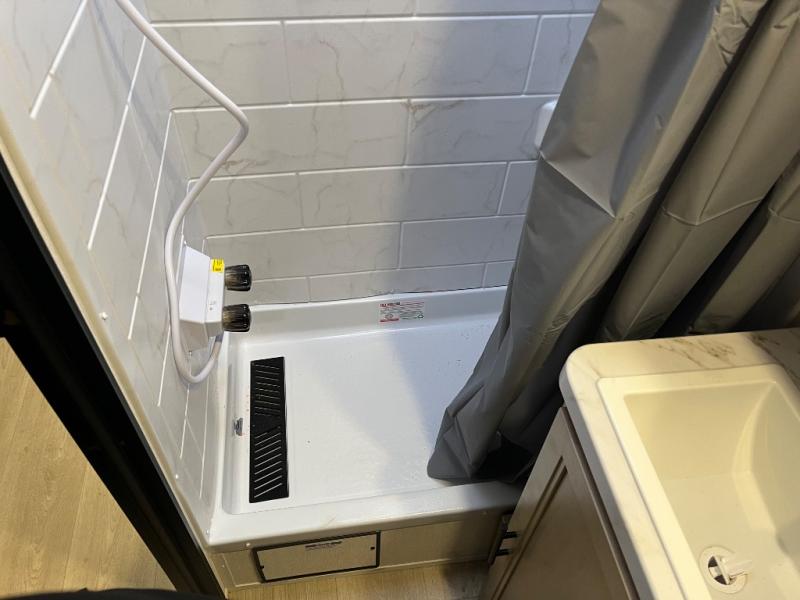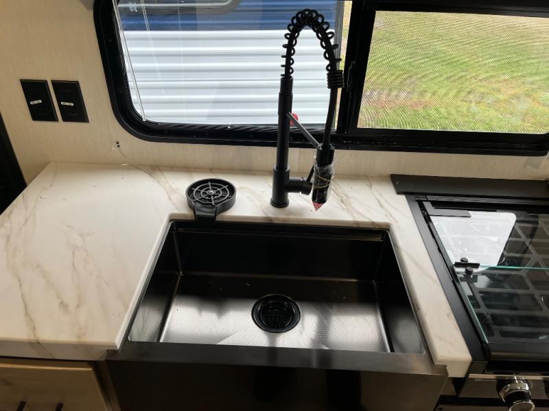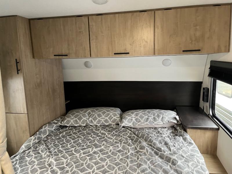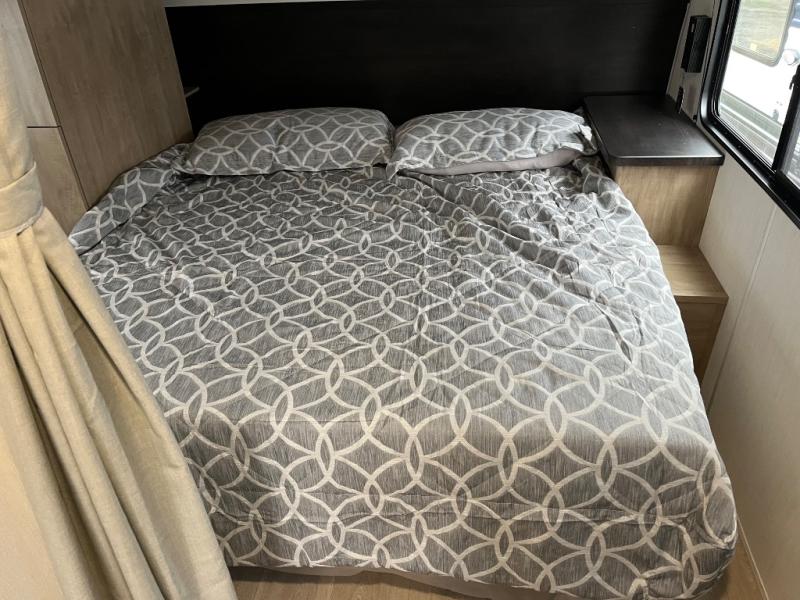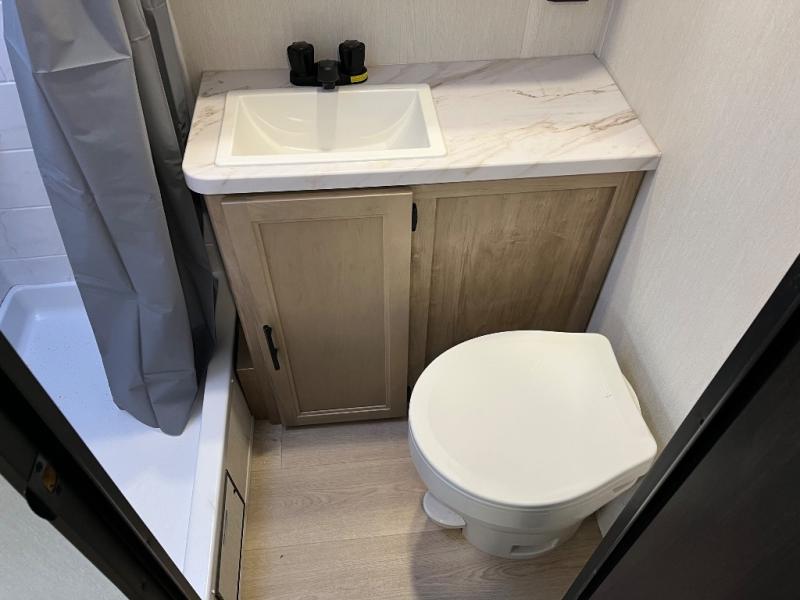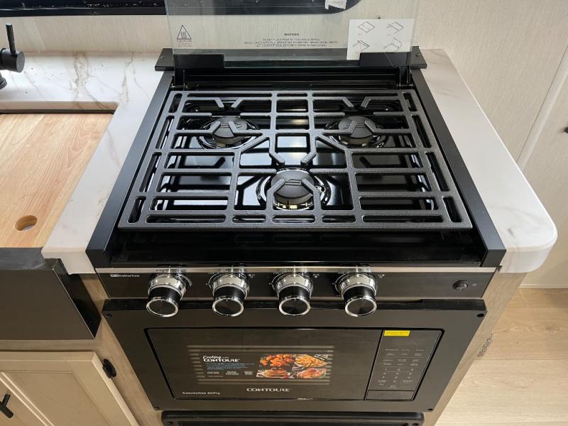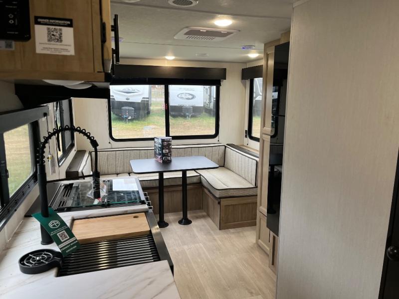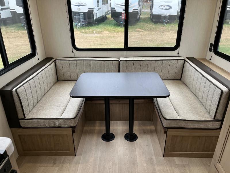 Time spent at the campground in this well designed travel trailer will be time well spent! The front bedroom includes a walk-around RV king bed, dual bedroom wardrobes plus USB ports to charge your phone or laptop. You can whip up breakfast in the modern kitchen that includes an air fryer, then dine around the U-shaped dinette with a panoramic window. This area can also double as sleeping space for one to two guests as well! A pantry will let you stock up on snacks and the TV mount means you can bring along a television if you want to enjoy movie nights. There is also a full bath with a tub/shower where you can freshen up each day!
