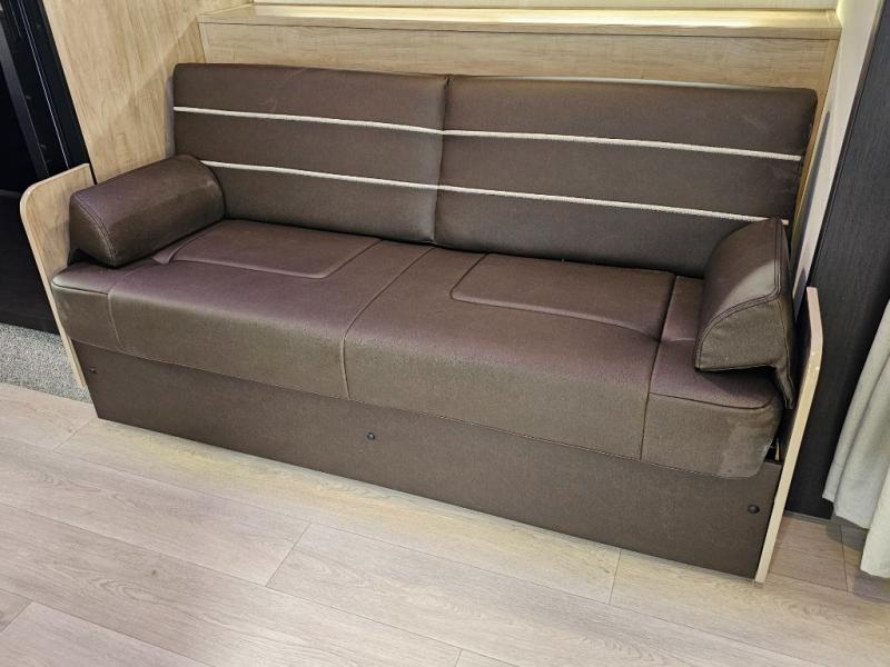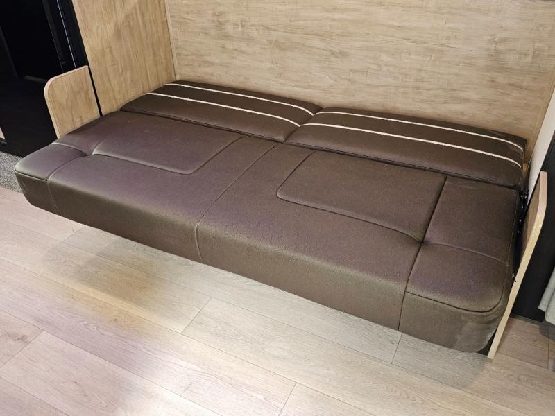 Booth dinette and sofa convert into additional sleeping spaces for guests or children