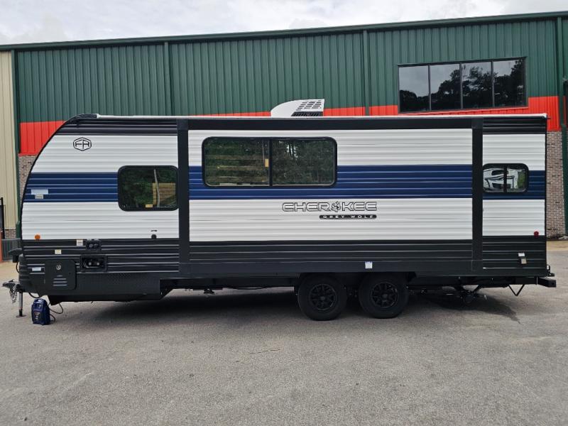 Perfect for couples or small families, the Cherokee Grey Wolf 22CE offers a smart floorplan with a rear kitchen, roomy semi-private front bedroom, and thoughtful amenities to keep you comfortable both on and off the road. Lightweight yet feature-packed, this travel trailer is ready for weekend escapes or cross-country adventures.