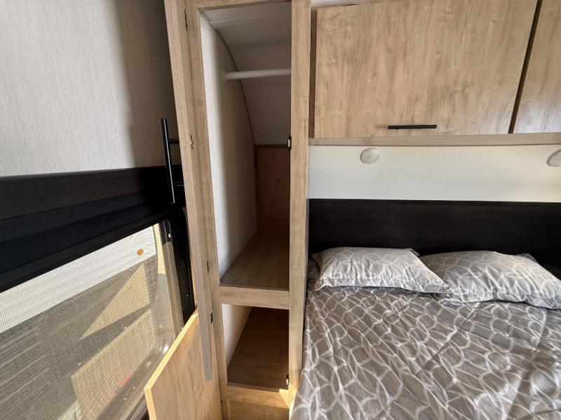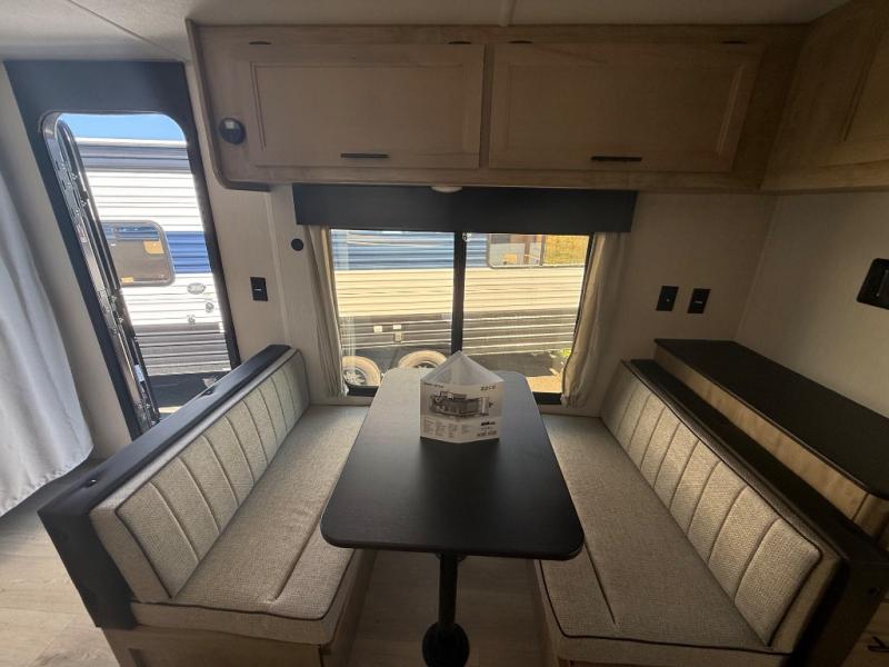 You will love traveling with this Cherokee Grey Wolf in tow. This is a great unit for a couple or family as the booth dinette and sofa can both be used for added sleeping for children or quests if needed. There is a comfortable RV king bed up front that you will love for a great night's rest with storage space in nightstands and wardrobes for your clothing and things on either side of the bed. A cooktop and air fryer is available for cooking inside, and the rear corner bath includes a tub/shower, toilet and sink. A nice 15' awning creates more outdoor living space to enjoy protected from the elements. You can also add a TV on the exterior as it has an outside TV mount.