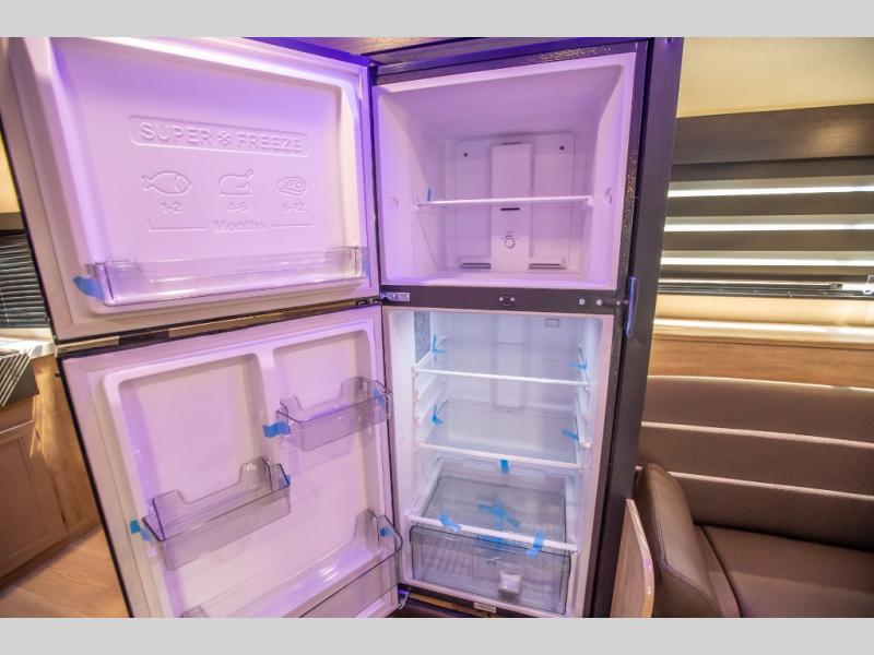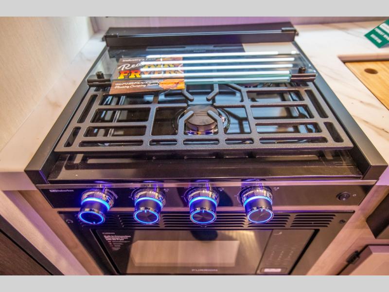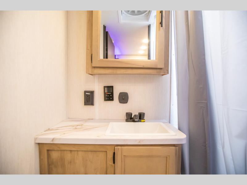 You will love traveling with this Cherokee Grey Wolf in tow. This is a great unit for a couple or family as the booth dinette and sofa can both be used for added sleeping for children or quests if needed. There is a comfortable RV king bed up front that you will love for a great night's rest with storage space in nightstands and wardrobes for your clothing and things on either side of the bed. A cooktop and air fryer is available for cooking inside, and the rear corner bath includes a tub/shower, toilet and sink. A nice 15' awning creates more outdoor living space to enjoy protected from the elements both day and night with an LED light strip for after dark. You can also add a TV on the exterior as it has an outside TV mount.