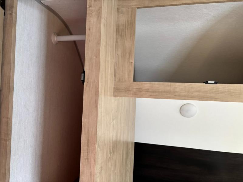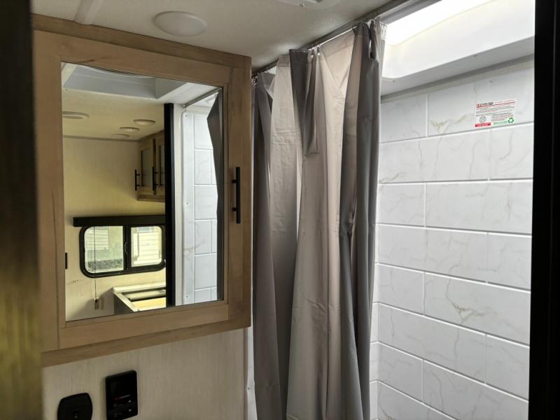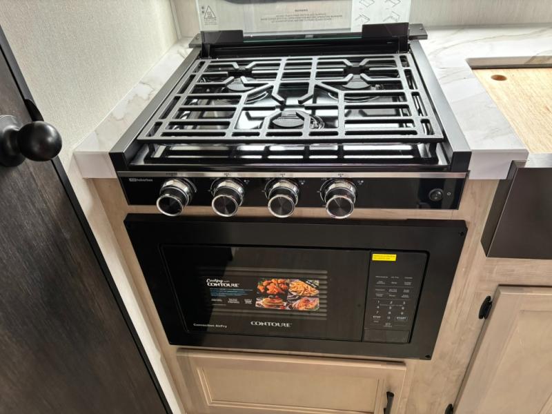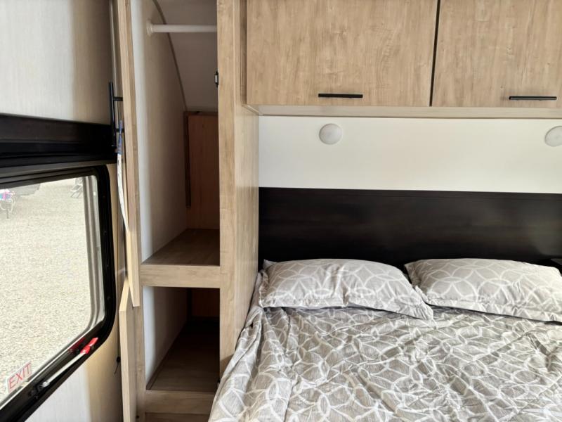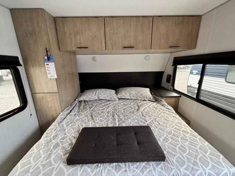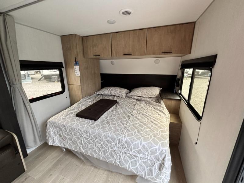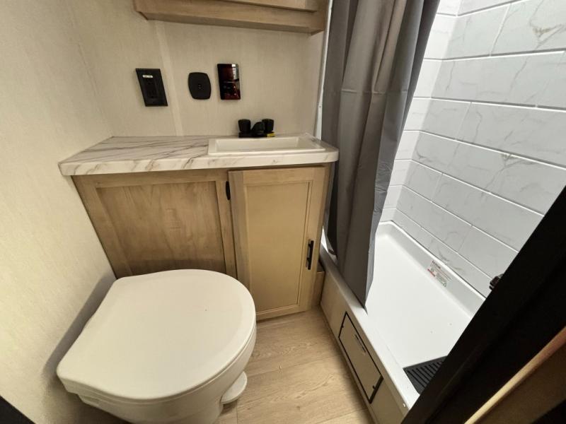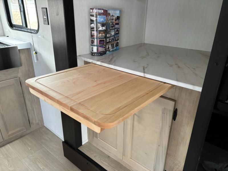 You will love traveling with this Cherokee Grey Wolf in tow. This is a great unit for a couple or family as the booth dinette and sofa can both be used for added sleeping for children or quests if needed. There is a comfortable RV king bed up front that you will love for a great night's rest with storage space in nightstands and wardrobes for your clothing and things on either side of the bed. A cooktop and air fryer is available for cooking inside, and the rear corner bath includes a tub/shower, toilet and sink. A nice 15' awning creates more outdoor living space to enjoy protected from the elements. You can also add a TV on the exterior as it has an outside TV mount.