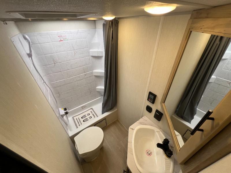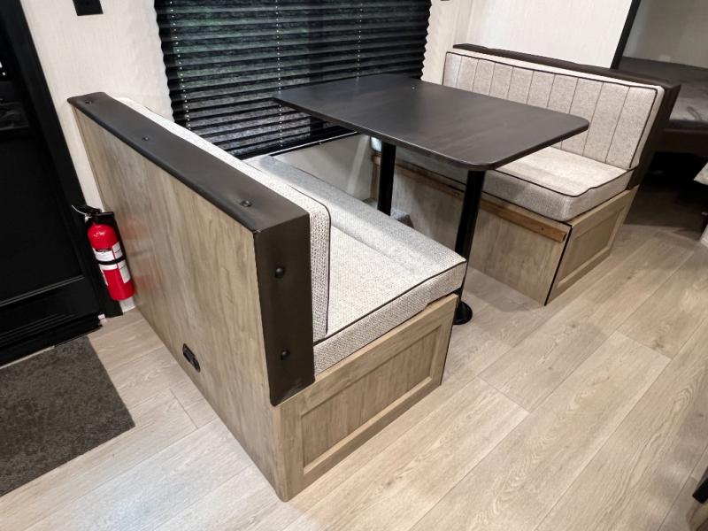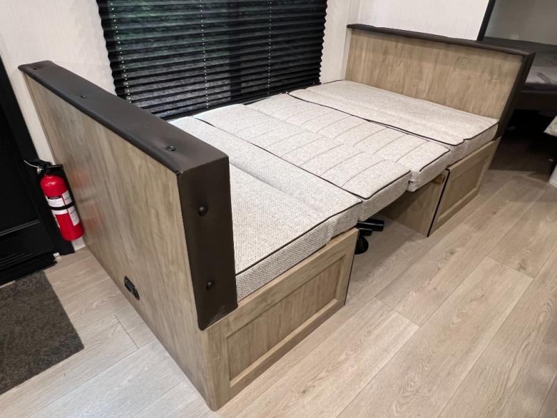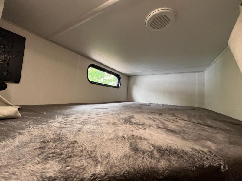 The whole family will love this travel trailer for weekend trips to the lake! When you arrive at the campground, unload the outside storage, set up the 15' patio awning, then take a hike to stretch your legs. The full kitchen with an included air fryer will let you prepare a quick lunch, and the full bath is there to freshen up each day. You will sleep soundly on the front RV king bed with dual bedroom wardrobes and USB ports, while the little ones or your guests take the double-size bunk beds! There is also a booth dinette that can double as dining and sleeping space for one to two more campers; now, that's convenient!