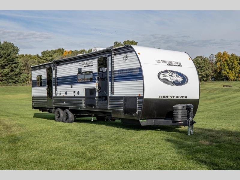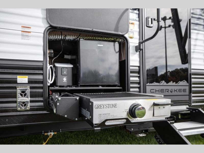 Whether it's a journey that will take you to new locations or a tried-and-true getaway to that favorite and memorable destination, the Forest River Cherokee Grey Wolf travel trailers and toy haulers are going to make the trip worth it every single time! You can travel in confidence with the premium wheel package, seamless roofing membrane with heat reflectivity, Power Gear frame technology with space-saver rail design, and Cherokee back-up camera system. The Cherokee Grey Wolf's interior is highly attractive with its stainless steel kitchen suite package, and premium bedding ensemble and comforter. You will also find a black waste tank flush-out kit, an outside shower with hot and cold water, an armored underbelly tank enclosure, and an RV grill quick connect.