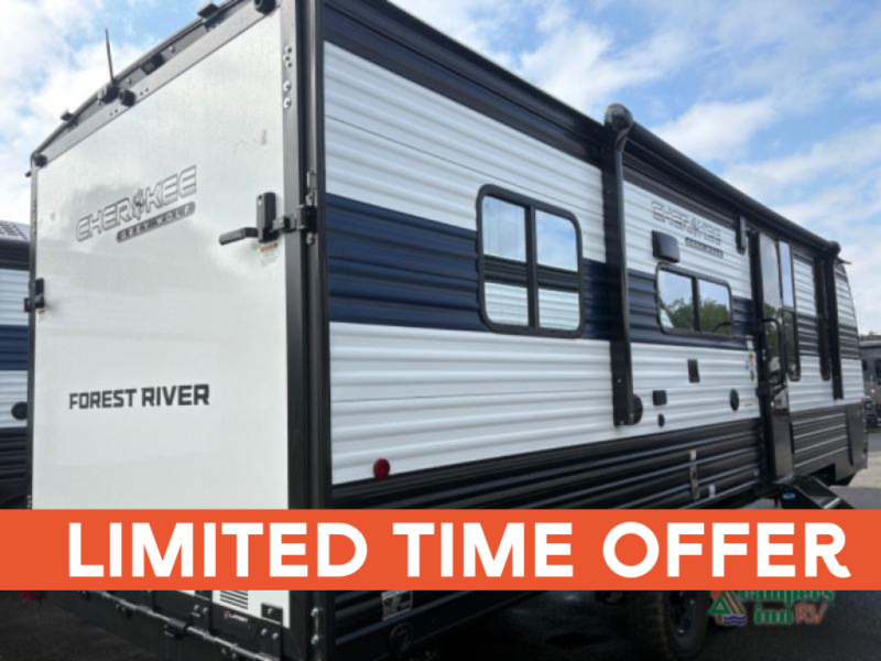 Whether it's a journey that will take you to new locations or a tried-and-true getaway to that favorite and memorable destination, the Forest River Cherokee Grey Wolf travel trailers and toy haulers are going to make the trip worth it every single time! You can travel in confidence with the premium wheel package, seamless roofing membrane with heat reflectivity, Power Gear frame technology with space-saver rail design, and Cherokee back-up camera system. The Cherokee Grey Wolf's interior is highly attractive with its stainless steel kitchen suite package, and premium bedding ensemble and comforter. You will also find a black waste tank flush-out kit, an outside shower with hot and cold water, an armored underbelly tank enclosure, and an RV grill quick connect.