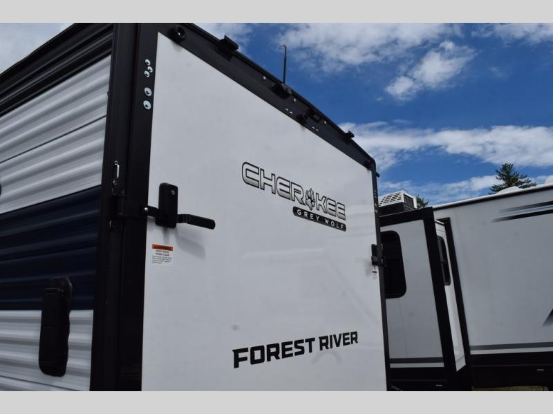 Whether it's a journey that will take you to new locations or a tried-and-true getaway to that favorite and memorable destination, the Forest River Cherokee Grey Wolf travel trailers and toy haulers are going to make the trip worth it every single time! You can travel in confidence with the premium wheel package, seamless roofing membrane with heat reflectivity, Power Gear frame technology with space-saver rail design, and Cherokee back-up camera system. The Cherokee Grey Wolf's interior is highly attractive with its stainless steel kitchen suite package, and premium bedding ensemble and comforter. You will also find a black waste tank flush-out kit, an outside shower with hot and cold water, an armored underbelly tank enclosure, and an RV grill quick connect.